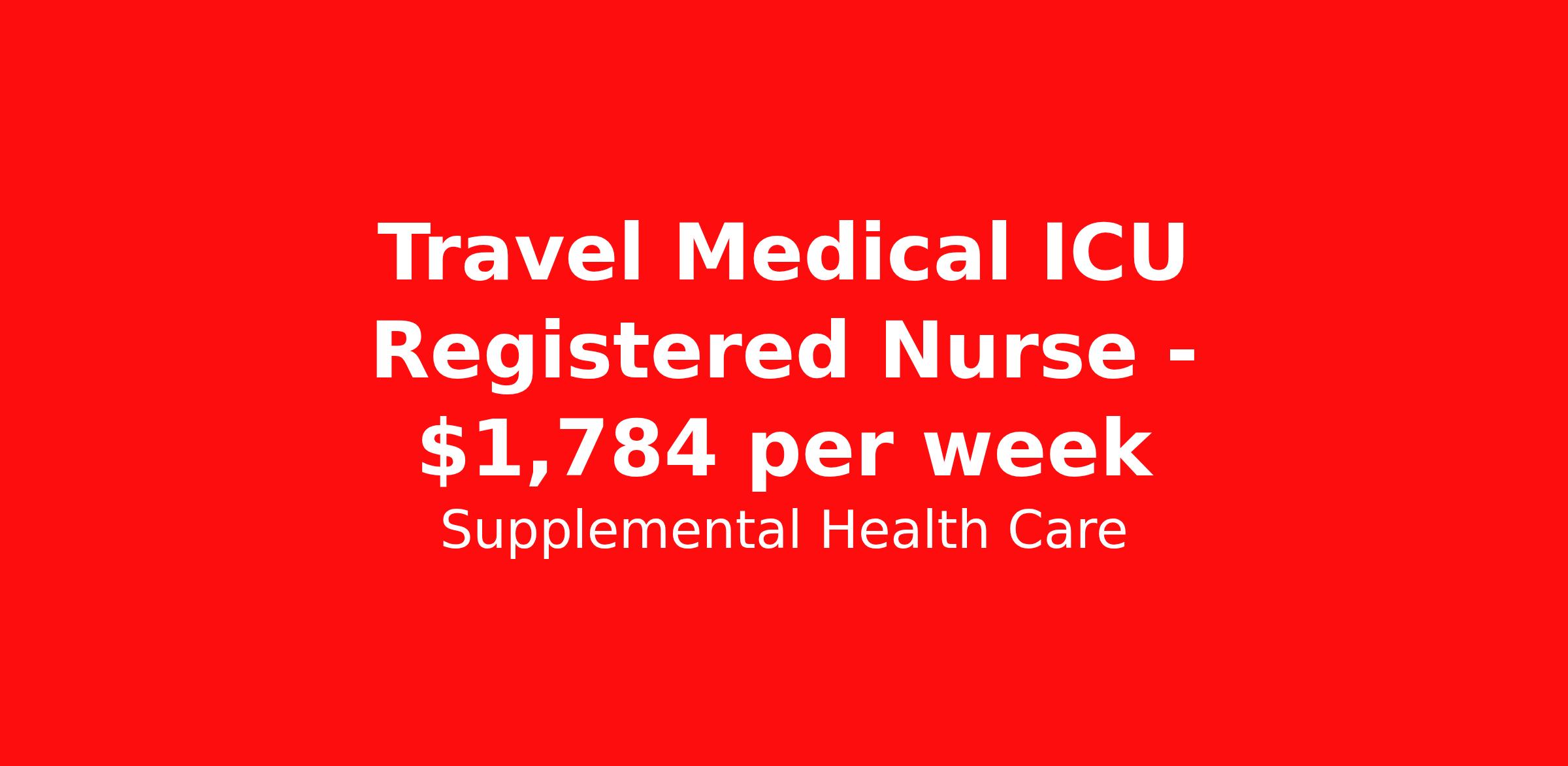 Supplemental Health Care is seeking a travel nurse RN MICU - Medical Intensive Care Unit for a travel nursing job in Cape Girardeau, Missouri. Job Description & Requirements Specialty: MICU - Medical Intensive Care Unit Discipline: RN Start Date: ASAP Duration: 13 weeks 36 hours per week Shift: 12 hours, days Employment Type: Travel Job Description: Supplemental Health Care is connecting Medical Intensive Care Unit Registered Nurses with top-tier hospital contracts in Cape Girardeau, Missouri. Travel or stay local, either way, we’ll guide you to an opportunity that matches your goals, offering excellent pay, benefits, and support. Qualifications: Current Missouri Registered Nurse License / Certification American Heart Association BLS 1 to 2 years of recent Medical Intensive Care Unit experience Medical Intensive Care Unit Registered Nurse Contract Details: $1,638 - $1,784 per week* Weekly pay 13-week contract with possibility to extend AM shifts available *Estimated weekly payment may include both taxable wages and tax-free reimbursements for meals, housing, and incidentals. Please speak with a recruiter for details. What We Offer: Full medical, dental, vision, life, and even pet insurance! Round the clock support. No matter where you are or what time it is, Supplemental Health Care is standing by. SHC's Share the Care referral program is the most dynamic, profitable referral program in the industry. 401(k) Retirement Savings Program with a wide range of investment options. Discounted and free online access to CEU courses through Supplemental University. Apply now to launch your next Medical Intensive Care Unit Registered Nurse assignment, or ask our team about other exciting Registered Nurse opportunities. Supplemental Health Care is an Equal Opportunity Employer. All candidates, including veterans and those with disabilities, are encouraged to apply. SHC will consider for employment qualified applicants with criminal histories in a manner consistent with the requirements of applicable local, state, or federal law. To learn more, visit www.shccares.com/eeo Supplemental Health Care Job ID 1468514. Pay package is based on 12 hour shifts and 36 hours per week (subject to confirmation) with tax-free stipend amount to be determined. Posted job title: Medical Intensive Care Unit Registered Nurse About Supplemental Health Care At Supplemental Health Care, a simple belief in the power of caring guides a unique commitment to world-class service in healthcare staffing. For 40 years, we’ve supported talented professionals pursuing their life calling in hospitals, schools, home health, corrections, behavioral health, and other settings. At SHC, we inspire vital connections and enrich lives and inspire better outcomes. As recipients of the Best in Staffing Awards for both Client and Talent, Supplemental Health Care is proud to be among only 2% of staffing companies singled out for the distinction based on the real feedback of our employees and the clients we serve. SHC has also earned The Joint Commission’s Gold Seal of Approval and is named among the Largest Health Care Staffing companies in the United States by Staffing Industry Analysts. We are also thrilled to recognize our very own SLP, Dr. Kelly Byrd as the American Staffing Association 2024 National Staffing Employee of the Year and Health Care Sector All-Star. We’re honored to connect Dr. Byrd to employment, share her incredible story, and support her family literacy nonprofit. For everyone that we serve, SHC is the place where caring hearts thrive. Benefits Referral bonus Benefits start day 1 401k retirement plan Continuing Education Discount program Health savings account