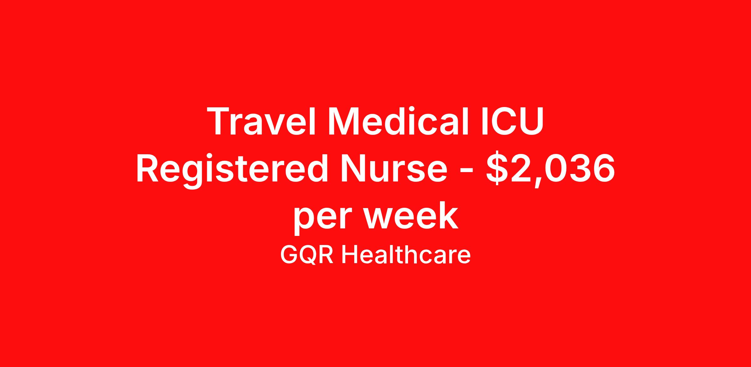 GQR Healthcare is seeking a travel nurse RN ICU - Intensive Care Unit for a travel nursing job in Alton, Illinois. Job Description & Requirements Specialty: ICU - Intensive Care Unit Discipline: RN Start Date: ASAP Duration: 13 weeks 36 hours per week Shift: 12 hours, nights Employment Type: Travel Contract - W2 ICU Registered Nurse (RN) Job Location: Alton, Illinois Start Date: March 16, 2026 Profession: Registered Nurse (RN) Facility: Short Term Acute Care Estimated Pay: $2035.84 - $2130.84 Duration:13 weeks Specialty:ICU Shift: Night Shift Details: 3x12 Night Job Type: Travel *Estimated weekly pay includes projected hourly wages and weekly meal and lodging per diems for eligible clinicians based on nationally published GSA rates. Actual weekly pay and per diems may differ from the amount shown and are subject to change during an assignment. Benefits: Day 1 Insurance Cigna medical, MetLife dental and vision insurance License reimbursement for new licenses needed for each assignment Discounts with hotels and rental cars A dedicated recruiter and support team that will help you every step of the way to sure you start on time and have an exceptional experience Referral bonus up to $700 About the Company: Finding the right role is about more than just matching skills to a job—it’s about aligning with your goals, values, and the way you want to work. As an award-winning talent partner, we support healthcare professionals through every step of that process, offering meaningful opportunities, clear guidance, and long-term partnership. From our first conversation to your first day on the job (and beyond!), we’re here to help you move forward with confidence. GQR Job ID 784633. Pay package is based on 12 hour shifts and 36 hours per week (subject to confirmation) with tax-free stipend amount to be determined. Posted job title: Registered Nurse (RN) About GQR Healthcare GQR’s Healthcare team specializes in connecting experts within the industry to highly skilled healthcare professionals across the US market. In the competitive healthcare market, we recognize that the industry’s common goals of improved quality of care and patient outcomes are wholly reliant upon the professionals directly supporting these initiatives. Leveraging our extensive candidate network, we deliver continuity of care for the communities our partners serve to ensure the patient experience is of the highest quality. Through deep market specialization and a unique approach to talent acquisition, GQR Healthcare provides an unparalleled and personalized experience across all medical specialties in nursing and within diverse healthcare platforms across the industry.