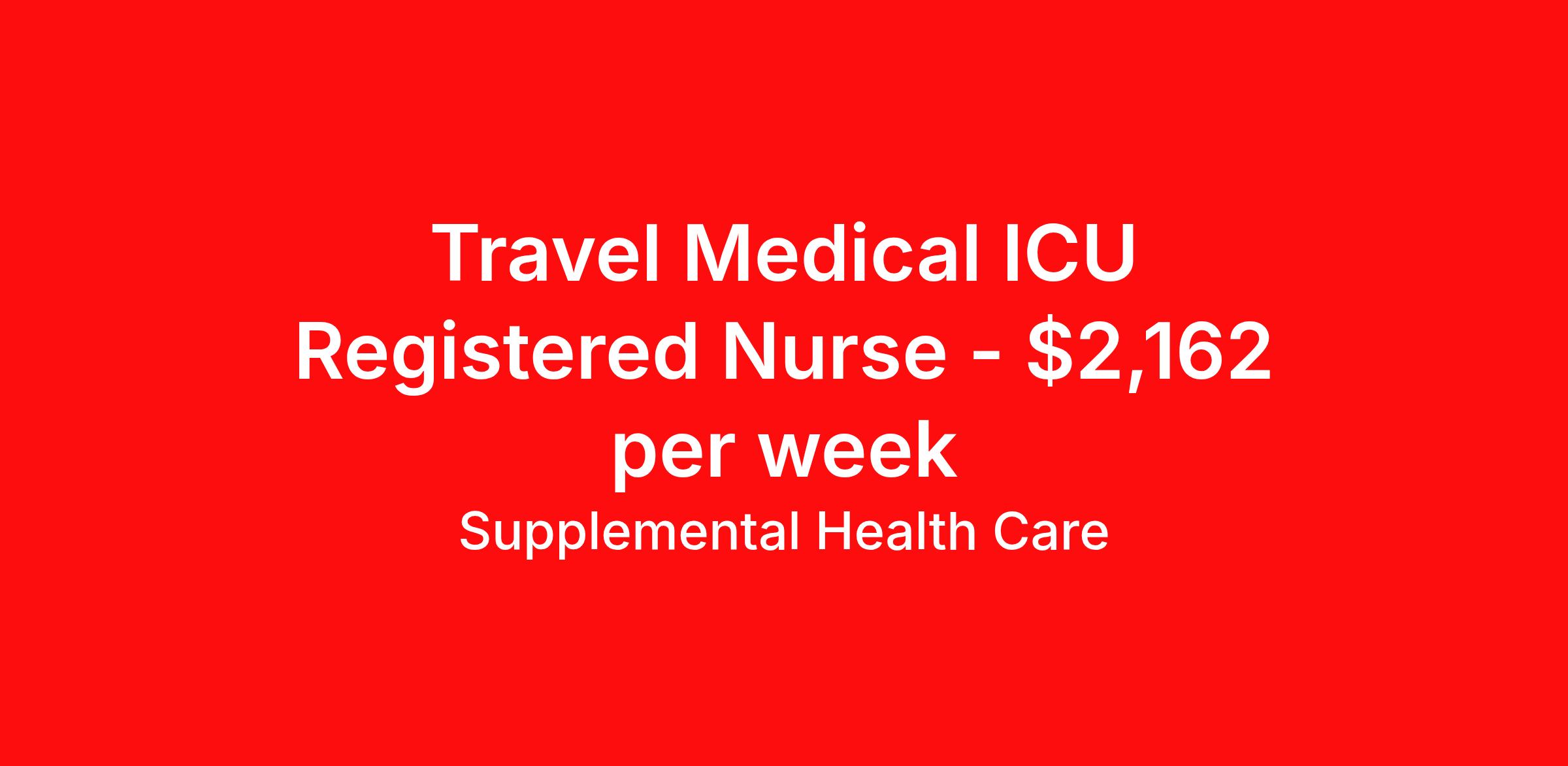 Supplemental Health Care is seeking a travel nurse RN MICU - Medical Intensive Care Unit for a travel nursing job in Saint Louis, Missouri. Job Description & Requirements Specialty: MICU - Medical Intensive Care Unit Discipline: RN Start Date: ASAP Duration: 13 weeks 36 hours per week Shift: 12 hours, nights Employment Type: Travel Job Description: Supplemental Health Care is connecting Medical Intensive Care Unit Registered Nurses with top-tier hospital contracts in Saint Louis, Missouri. Travel or stay local, either way, we’ll guide you to an opportunity that matches your goals, offering excellent pay, benefits, and support. Qualifications: Current Missouri Registered Nurse License / Certification American Heart Association BLS 1 to 2 years of recent Medical Intensive Care Unit experience Medical Intensive Care Unit Registered Nurse Contract Details: $1,962 - $2,162 per week* Weekly pay 13-week contract with possibility to extend NOC shifts available *Estimated weekly payment may include both taxable wages and tax-free reimbursements for meals, housing, and incidentals. Please speak with a recruiter for details. What We Offer: Full medical, dental, vision, life, and even pet insurance! Round the clock support. No matter where you are or what time it is, Supplemental Health Care is standing by. SHC's Share the Care referral program is the most dynamic, profitable referral program in the industry. 401(k) Retirement Savings Program with a wide range of investment options. Discounted and free online access to CEU courses through Supplemental University. Apply now to launch your next Medical Intensive Care Unit Registered Nurse assignment, or ask our team about other exciting Registered Nurse opportunities. Supplemental Health Care is an Equal Opportunity Employer. All candidates, including veterans and those with disabilities, are encouraged to apply. SHC will consider for employment qualified applicants with criminal histories in a manner consistent with the requirements of applicable local, state, or federal law. To learn more, visit www.shccares.com/eeo Supplemental Health Care Job ID 1470357. Pay package is based on 12 hour shifts and 36 hours per week (subject to confirmation) with tax-free stipend amount to be determined. Posted job title: Medical Intensive Care Unit Registered Nurse About Supplemental Health Care At Supplemental Health Care, a simple belief in the power of caring guides a unique commitment to world-class service in healthcare staffing. For 40 years, we’ve supported talented professionals pursuing their life calling in hospitals, schools, home health, corrections, behavioral health, and other settings. At SHC, we inspire vital connections and enrich lives and inspire better outcomes. As recipients of the Best in Staffing Awards for both Client and Talent, Supplemental Health Care is proud to be among only 2% of staffing companies singled out for the distinction based on the real feedback of our employees and the clients we serve. SHC has also earned The Joint Commission’s Gold Seal of Approval and is named among the Largest Health Care Staffing companies in the United States by Staffing Industry Analysts. We are also thrilled to recognize our very own SLP, Dr. Kelly Byrd as the American Staffing Association 2024 National Staffing Employee of the Year and Health Care Sector All-Star. We’re honored to connect Dr. Byrd to employment, share her incredible story, and support her family literacy nonprofit. For everyone that we serve, SHC is the place where caring hearts thrive. Benefits Referral bonus Benefits start day 1 401k retirement plan Continuing Education Discount program Health savings account