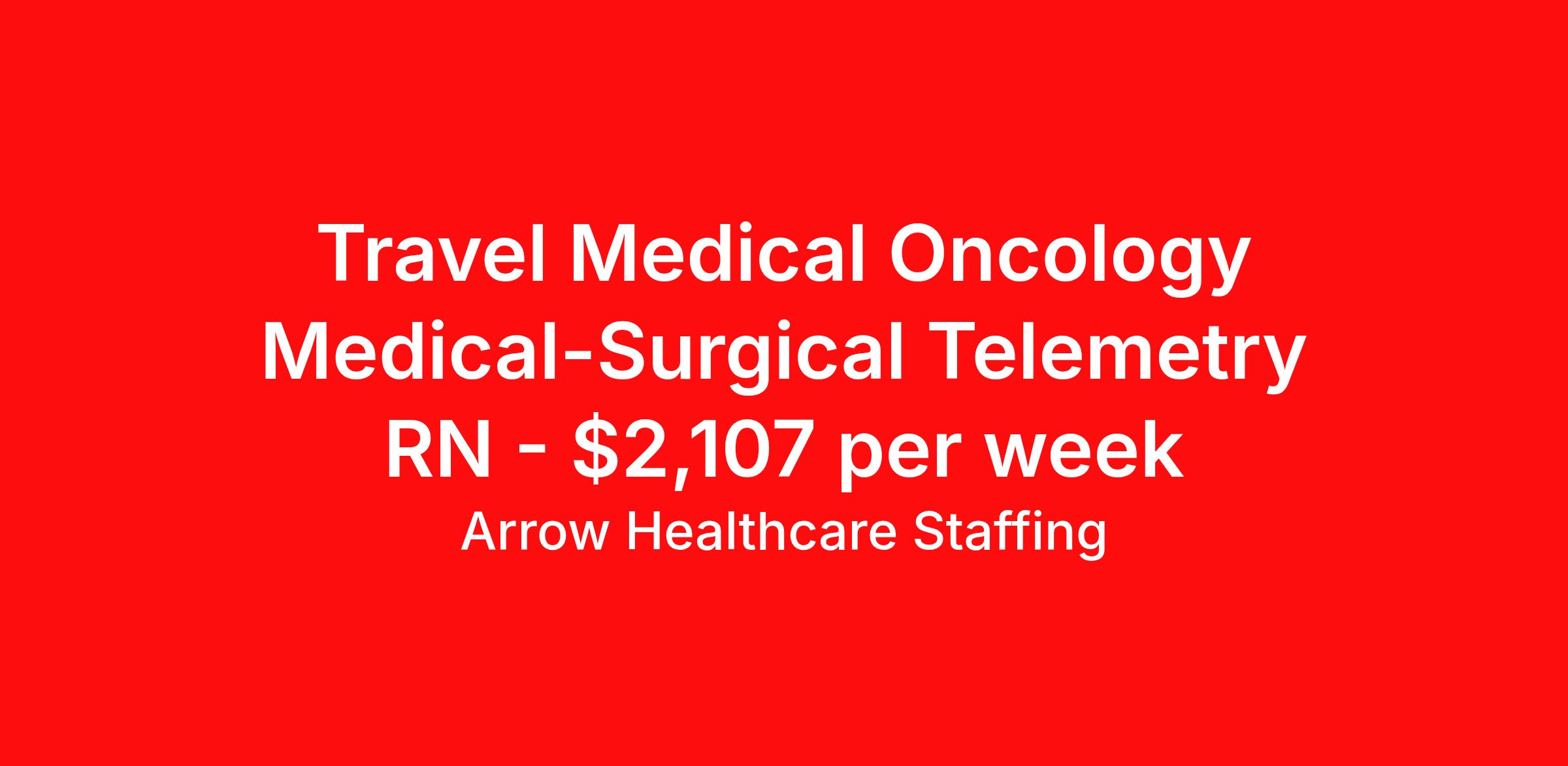 Arrow Healthcare Staffing is seeking a travel nurse RN Med Surg / Telemetry for a travel nursing job in Columbus, Ohio. Job Description & Requirements Specialty: Med Surg / Telemetry Discipline: RN Start Date: 04/20/2026 Duration: 16 weeks 36 hours per week Shift: 12 hours, nights Employment Type: Travel Arrow Healthcare Staffing Job ID 17977821. Pay package is based on 12 hour shifts and 36.0 hours per week (subject to confirmation) with tax-free stipend amount to be determined. Posted job title: RN - MedSurg / Tele RN MedSurg / Tele About Arrow Healthcare Staffing Arrow Healthcare Staffing is a Midwest based travel nursing and allied health recruiting firm. We specialize in local/ travel nursing, medical laboratory, pharmacy, radiology/imaging, therapy, and executive/leadership recruitment. We offer direct hospital contracts and all of the top benefits in the marketplace today. Benefits Medical benefits Vision benefits Weekly pay Benefits start day 1 Holiday Pay 401k retirement plan Dental benefits License and certification reimbursement Guaranteed Hours Continuing Education Cancelation protection Mileage reimbursement Referral bonus