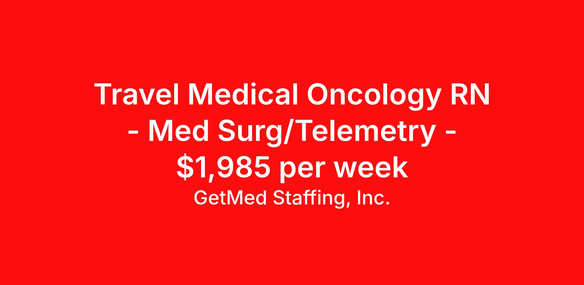 GetMed Staffing, Inc. is seeking a travel nurse RN Telemetry for a travel nursing job in Columbus, Ohio. Job Description & Requirements Specialty: Telemetry Discipline: RN Start Date: 04/20/2026 Duration: 16 weeks 36 hours per week Shift: 12 hours, nights Employment Type: Travel GetMed Staffing is searching for a strong Telemetry RN to assist our traveler-friendly client. A minimum of 1-2 years of experience is required. Traveling with GetMed Staffing offers the unique opportunity to gain diverse experiences, both personally and professionally. Gain experience that matters. GetMed Staffing, Inc. Job ID 36169639. Pay package is based on 12 hour shifts and 36.0 hours per week (subject to confirmation) with tax-free stipend amount to be determined. Posted job title: RN:Telemetry,19:00:00-07:00:00 About GetMed Staffing, Inc. We are a diversity owned company, specializing in healthcare recruiting services. We truly understand how important a healthcare travelers' relationship is with their recruiter, as well as our relationship is with our healthcare facilities. We recognize that the needs of our healthcare travelers can vary, and therefore we provide the personalized touch necessary to ensure a successful travel assignment each and every time. Our healthcare facilities and clients benefit from us putting our healthcare travelers first. GetMed Staffing is excited to be a leader within the industry by focusing on providing healthcare travelers with more choices and possibilities as they plan for their next healthcare travel assignment. Benefits Life insurance Medical benefits Dental benefits Vision benefits 401k retirement plan