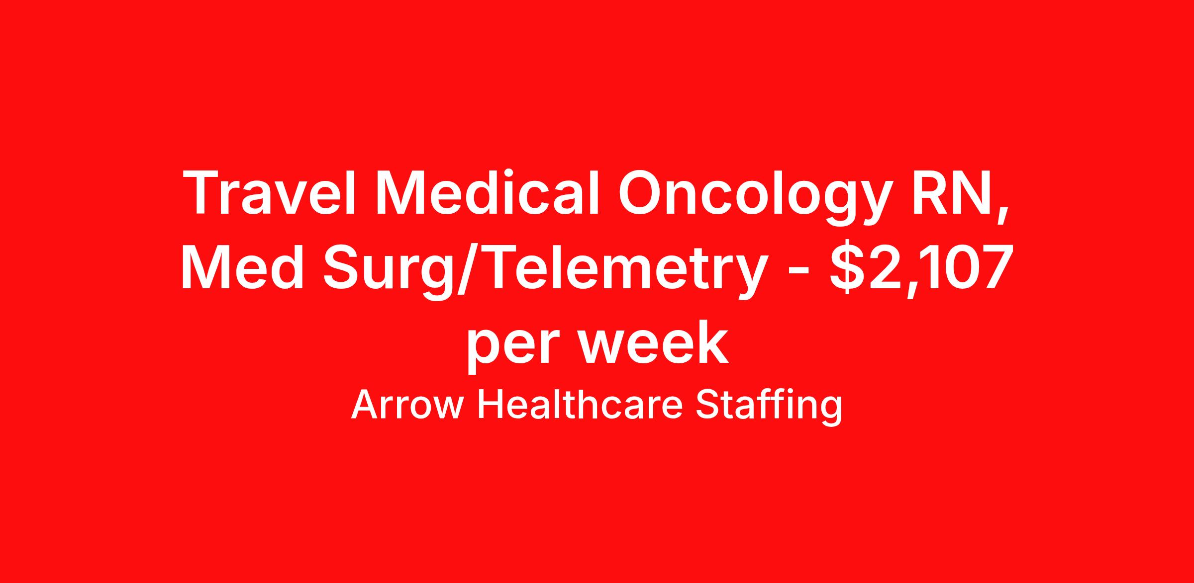 Arrow Healthcare Staffing is seeking a travel nurse RN Med Surg / Telemetry for a travel nursing job in Columbus, Ohio. Job Description & Requirements Specialty: Med Surg / Telemetry Discipline: RN Start Date: 04/20/2026 Duration: 16 weeks 36 hours per week Shift: 12 hours, nights Employment Type: Travel Arrow Healthcare Staffing Job ID 17964955. Pay package is based on 12 hour shifts and 36.0 hours per week (subject to confirmation) with tax-free stipend amount to be determined. Posted job title: RN - MedSurg / Tele RN MedSurg / Tele About Arrow Healthcare Staffing Arrow Healthcare Staffing is a Midwest based travel nursing and allied health recruiting firm. We specialize in local/ travel nursing, medical laboratory, pharmacy, radiology/imaging, therapy, and executive/leadership recruitment. We offer direct hospital contracts and all of the top benefits in the marketplace today. Benefits Medical benefits Vision benefits Weekly pay Benefits start day 1 Holiday Pay 401k retirement plan Dental benefits License and certification reimbursement Guaranteed Hours Continuing Education Cancelation protection Mileage reimbursement Referral bonus