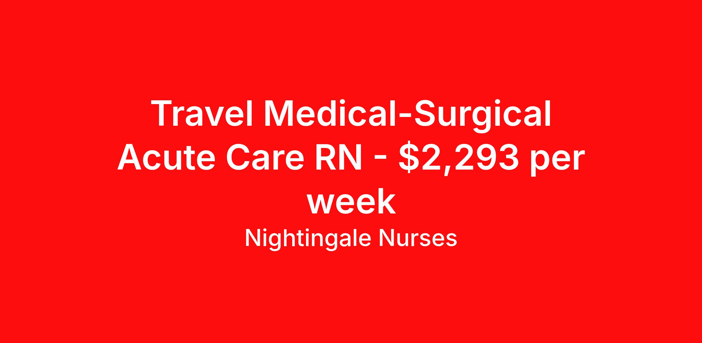Nightingale Nurses is seeking a travel nurse RN Med Surg for a travel nursing job in Peoria, Illinois. Job Description & Requirements Specialty: Med Surg Discipline: RN Start Date: 03/30/2026 Duration: 13 weeks 36 hours per week Shift: 12 hours, nights Employment Type: Travel About Nightingale Nurses the first name in travel nursing You may not realize it, but as an RN with real world hospital experience, you are legendary. To the lives you’ve helped save, the patients you’ve cared for, and to the hospitals where you’ve done it. And you’re just getting started. Legendary is where Nightingale begins. We’re the first name in travel nursing, representing only the very best RNs. That’s why hospitals prefer us, allowing us to offer exceptional travel nursing assignments all over the US, as well as the highest pay rates and most extensive benefits in the industry. Nightingale facilitates every aspect of your travel nursing assignment, so you can focus on doing what you do best. We want you to grow, explore, and enjoy unrivaled liberty, the freedom to nurse.