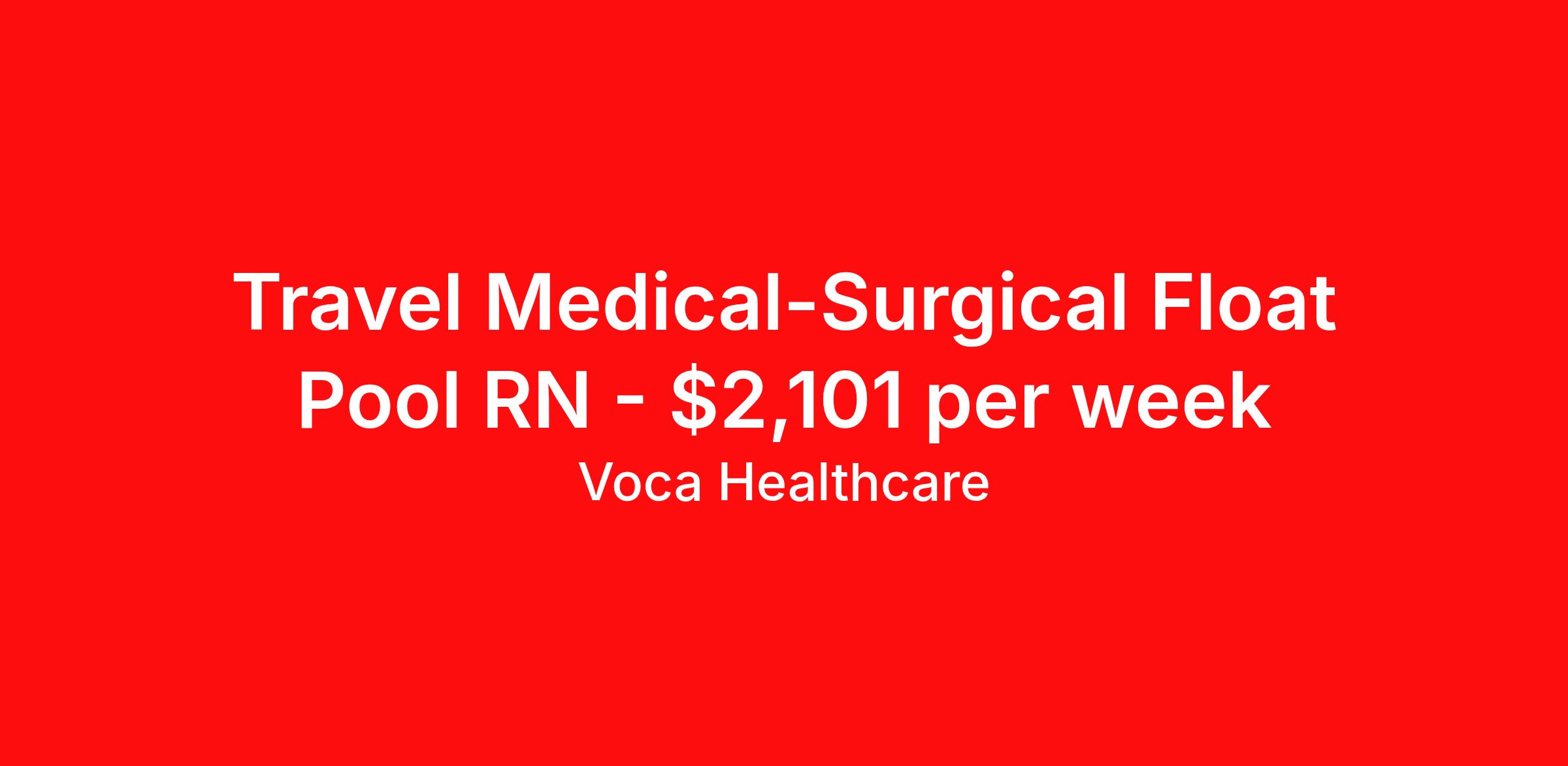 Voca Healthcare is seeking a travel nurse RN Float Med Surg for a travel nursing job in Albany, Georgia. Job Description & Requirements Specialty: Med Surg Discipline: RN Start Date: 04/13/2026 Duration: 13 weeks 36 hours per week Shift: 12 hours, days Employment Type: Travel Benefits available on 1st of the month after start: Holiday pay Weekly pay Retention bonus 401k retirement plan Medical benefits Dental benefits Vision benefits Referral bonus Voca Healthcare Job ID 17934349. Pay package is based on 12 hour shifts and 36.0 hours per week (subject to confirmation) with tax-free stipend amount to be determined. Posted job title: RN:Med Surg,07:00:00-19:00:00 About Voca Healthcare As a Voca Traveler, you will gain new clinical skills, visit amazing places and meet awesome healthcare professionals. As a travel health professional, your experience and dedication to patient care is in high demand throughout the United States. Whether you are a veteran traveler looking for your next opportunity, or you are looking to travel for the first time, Voca is here to support you. Voca’s experienced and dedicated travel team works in concert with you every step of the way. Our long-standing partnerships with some of the most respected and recognized healthcare organizations in the country allow us to identify career opportunities to help you increase your knowledge and experience while working with some of the best physicians and healthcare professionals in the world. At Voca, we strongly believe a better career results in a happier you. We are here to help you find a position that is professionally and personally rewarding. Benefits Holiday Pay 401k retirement plan Medical benefits Dental benefits Vision benefits Guaranteed Hours