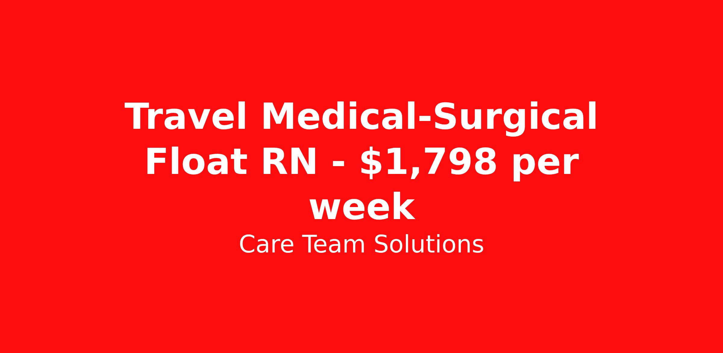 Care Team Solutions is seeking a travel nurse RN Float Med Surg for a travel nursing job in Huntington, West Virginia. Job Description & Requirements Specialty: Med Surg Discipline: RN Start Date: 04/13/2026 Duration: 13 weeks 36 hours per week Shift: 12 hours Employment Type: Travel Registered Nurse must have 2 years of recent experience in particular specialty Details: Must Have 2 Years of recent Medical-Surgical experience. Specialty: Medical-Surgical Discipline: Registered Nurse Start Date: 2026-04-13 Duration: 13 Weeks Shift: 12 Hours Overnight shift. Hours Per Week: 36 Hours Employment Type: Contract Gross Weekly Pay: $1797.92 Six things that won’t happen if you apply to this job: You won’t have to guess what the downsides are. We’ll tell you up front. You won’t show up on day 1 and find out this is not what you signed up for. We won't leave your phone call ringing when it's inconvenient. Business hours for you are business hours for us. You won’t get shuffled to some customer service rep when a problem pops up. If we screw up something in securing your placement, we'll own it. That means it's on us to make it right. You won’t figure out your credentials alone. Our credentialing experts will walk you through it step by step. We've talked to thousands of travel nurses like you. We know you want good pay. You want to choose when you work. But the one thing nurse after nurse has said they want and don't have is someone in their corner. There's a lot in this business that’s messed up. We’re trying to be the people that fix it. You and every nurse with the guts to travel deserve it. We've worked hard for you to enjoy some one-of-a-kind benefits you'll not likely find anywhere else, because they benefit you more than they benefit us: Our early pay program Student loan reimbursement Free well-being tele-visits with a psychologist Care Team Solutions Job ID 586128. Pay package is based on 12 hour shifts and 36 hours per week (subject to confirmation) with tax-free stipend amount to be determined. Posted job title: Medical Surgical Float Registered Nurse About Care Team Solutions Two brothers who give an enormous damn. We're Justin and Kyle. Neither of us are nurses. It doesn’t take a nurse to see that the way travel nurses are treated sucks. Nursing is already hard enough. Travel nursing takes serious guts. You get the toughest assignments in places you’ve never been. Which can be fun, but it’s also stressful. You’re in your element but outside of your hometown. You can be a stranger on the team. If anyone deserves someone in their corner, it’s you. But that’s not how most agencies operate. Which is why travel nurses hate working with them. We got into this business because we saw bucket-loads of nurses moving through the "churn and burn" travel machinery. We absolutely hate that. You'll do your best work when you have the placements you want and feel fully supported in your work. We pay our people well because we want them to treat you well. Our recruiters are amazing (we picked each of them ourselves), but if you've got a problem too big for them, they can come straight to us. We work like ten feet away. The "Churners and Burners" promise you the same benefits. They might as well copy/paste them from each other. We have them too: 401k, holiday pay, healthcare, dental, travel reimbursement, etc But we've worked hard for you to enjoy some one-of-a-kind benefits you'll not likely find anywhere else, because they benefit you more than they benefit us: Our early pay program Student loan reimbursement Free well-being tele-visits with a psychologist Benefits Weekly pay Holiday Pay Guaranteed Hours 401k retirement plan Wellness and fitness programs Referral bonus Medical benefits Dental benefits Vision benefits School loan reimbursement