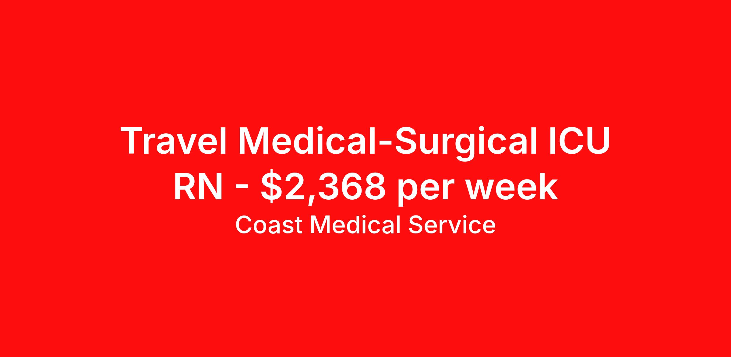 Coast Medical Service is seeking a travel nurse RN ICU - Intensive Care Unit for a travel nursing job in Omaha, Nebraska. Job Description & Requirements Specialty: ICU - Intensive Care Unit Discipline: RN Start Date: 03/30/2026 Duration: 13 weeks 36 hours per week Shift: 12 hours, nights Employment Type: Travel Coast Medical Service is a nationwide travel nursing & allied healthcare staffing agency dedicated to providing an elite traveler experience for the experienced or first-time traveler. Coast is featured on Blue Pipes' 2023 Best Travel Agencies and named a 2022 Top Rated Healthcare Staffing Firm & 2023 First Half Top Rated Healthcare Staffing Firm by Great Recruiters. Please note that pay rate may differ for locally based candidates. Please apply here or contact a recruiter directly to learn more about this position & the facility, and/or explore others that may be of interest to you. We look forward to speaking with you! Coast Medical Services Job ID 36043308. Pay package is based on 12 hour shifts and 36.0 hours per week (subject to confirmation) with tax-free stipend amount to be determined. Posted job title: RN:Intensive Care Unit (ICU),19:00:00-07:30:00