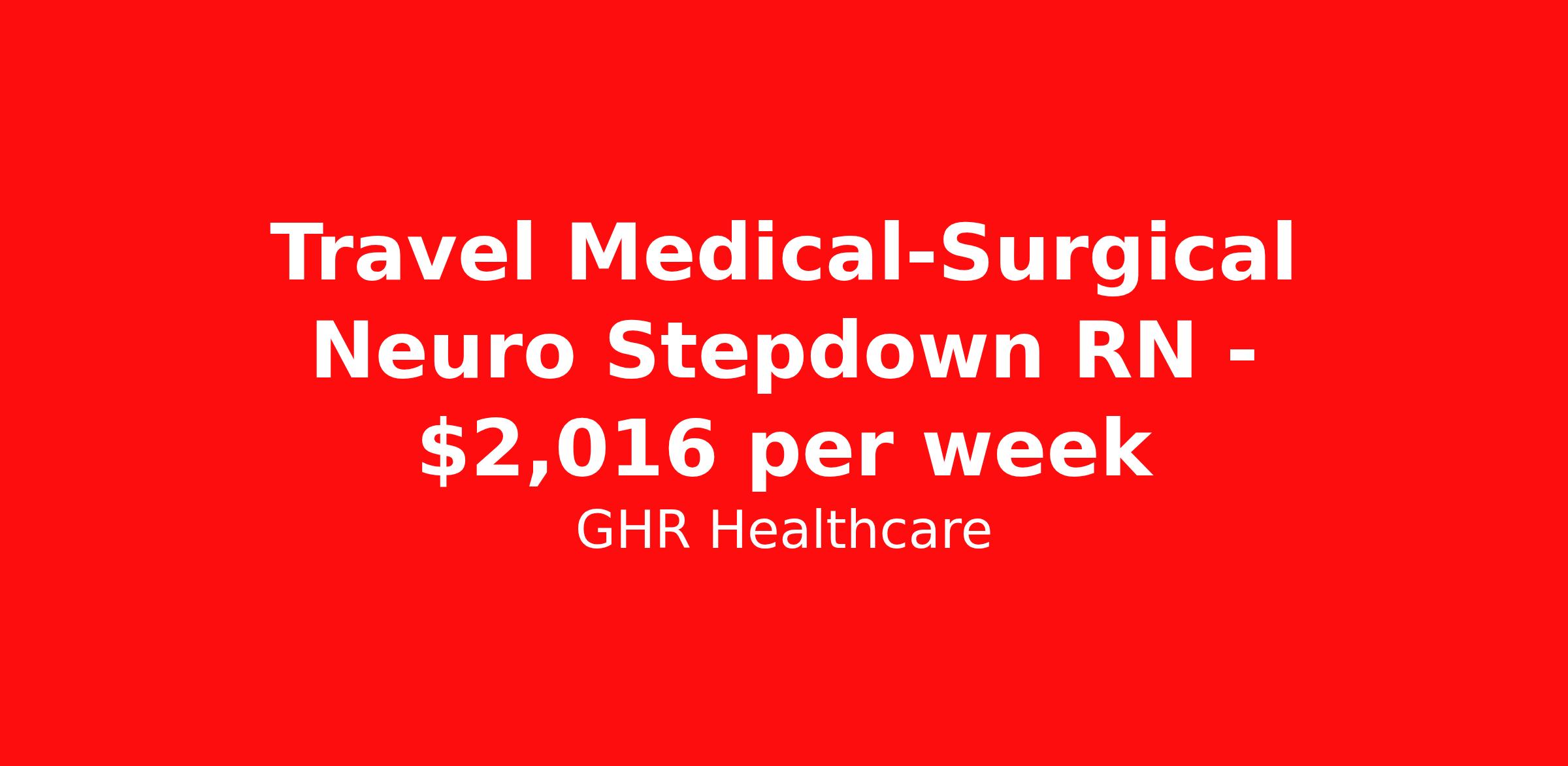 Travel Medical-Surgical Neuro Stepdown RN - $2,016 per week