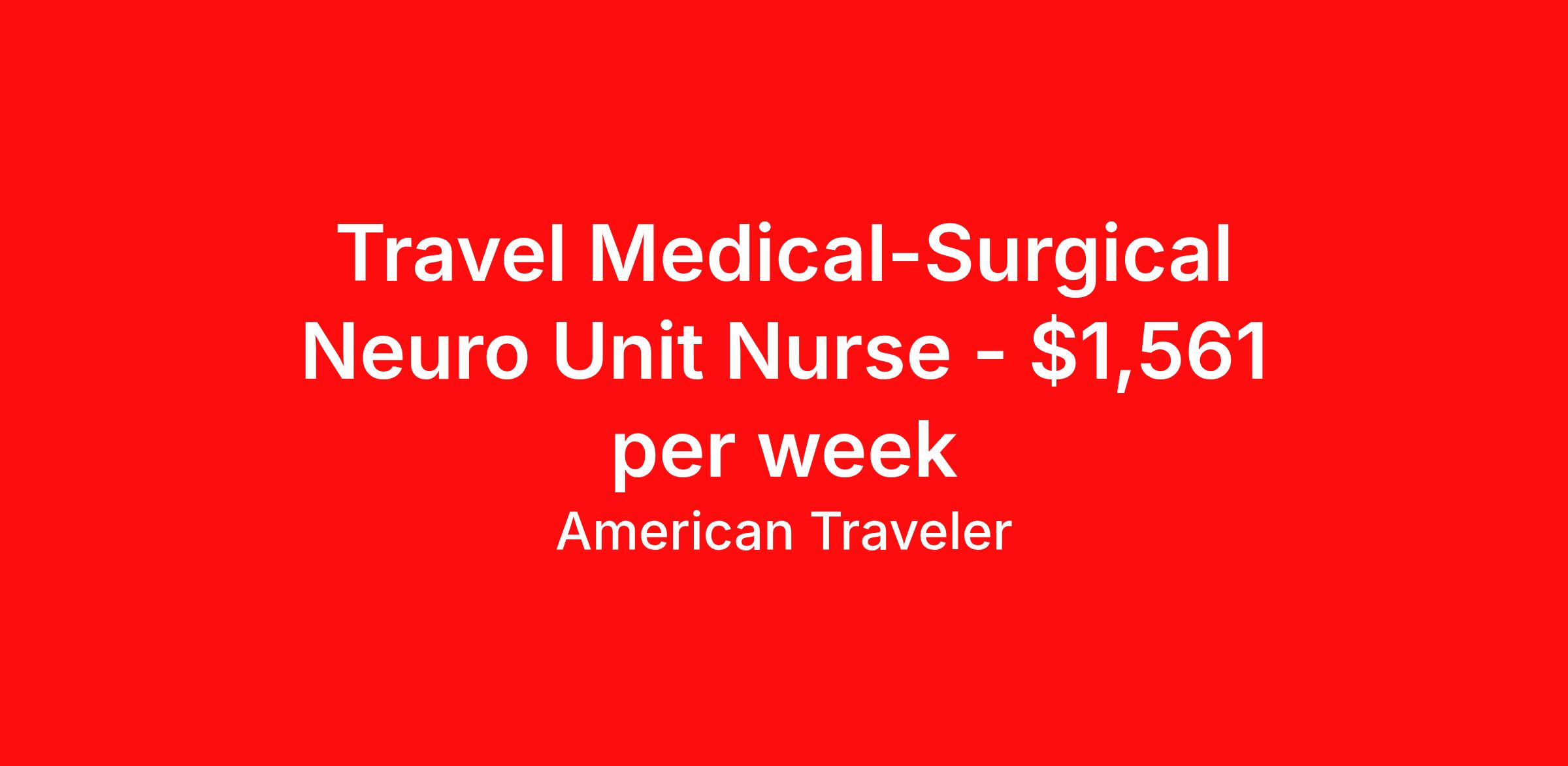 Travel Medical-Surgical Neuro Unit Nurse - $1,561 per week