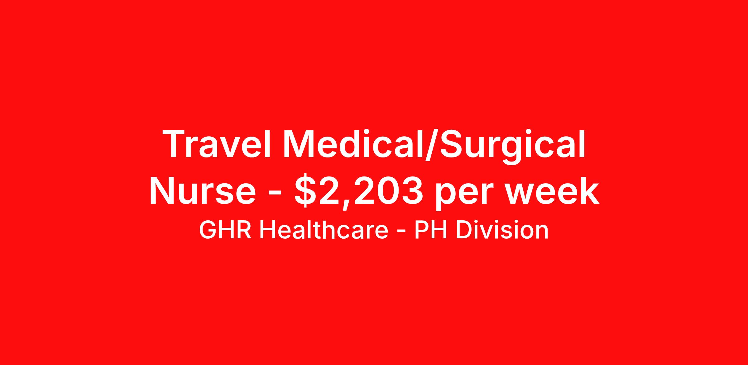 GHR Healthcare - PH Division is seeking a travel nurse RN Med Surg for a travel nursing job in Altoona, Pennsylvania. Job Description & Requirements Specialty: Med Surg Discipline: RN Start Date: 04/06/2026 Duration: 12 weeks 36 hours per week Shift: 12 hours Employment Type: Travel Planet Healthcare Job ID 74074733. Pay package is based on 12 hour shifts and 36 hours per week (subject to confirmation) with tax-free stipend amount to be determined. About GHR Healthcare - PH Division For over 30 years, GHR Healthcare has been the bridge between healthcare professionals and the facilities that need them nationwide. We're committed to uncovering your ideal fit, supported by GHR's dedication to competitive compensation, transparent communication, and a devoted team that genuinely cares about your career journey. You can trust us to stand by your side as your advocate, confidante, and partner in advancing your career. At GHR, care and consideration are at the heart of everything we do. Visit ghrhealthcare.com to learn more.