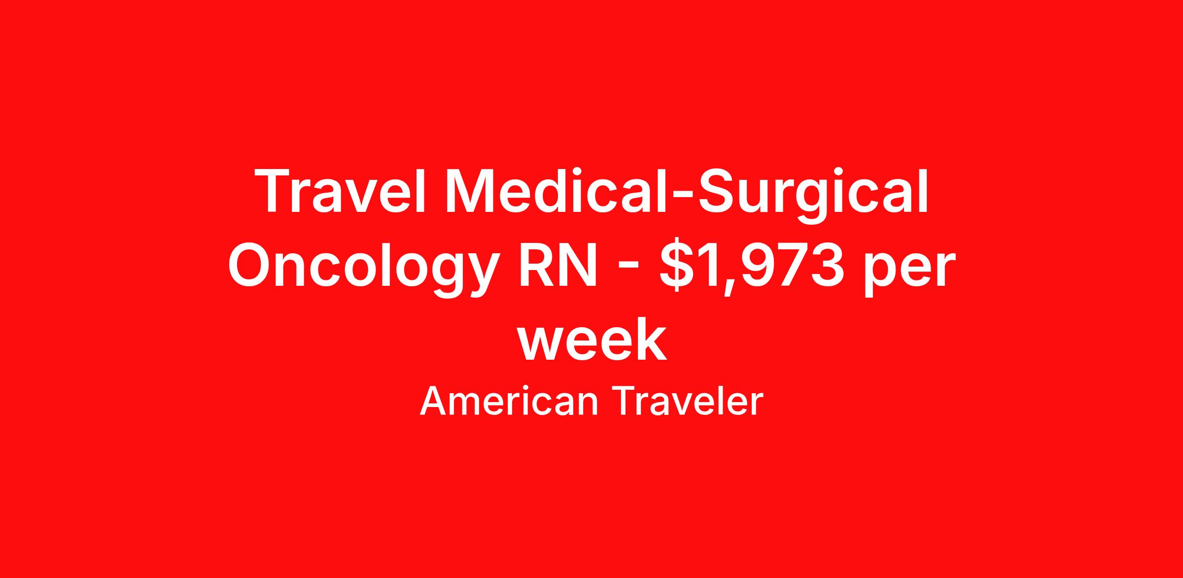 American Traveler is seeking a travel nurse RN Oncology Med Surg for a travel nursing job in Memphis, Tennessee. Job Description & Requirements Specialty: Oncology Discipline: RN Start Date: 03/23/2026 Duration: 13 weeks 36 hours per week Shift: 12 hours, nights Employment Type: Travel Assignment Overview Shift: Nights, 3x12hrs Hours: 36 hrs/wk Start Date: Mar 23, 2026 Length: 13 weeks Openings: 1 Description American Traveler is seeking an experienced RN for a Med/Surg Oncology position requiring at least 2 years of recent oncology and trauma experience and a TN or compact RN license. Details Work in a hospital-based Medical Surgical Oncology unit within a Level I Trauma Center Team nursing approach used for patient care Night shift position, 3x12 hour shifts from 19:00 to 07:00 On-call and weekend shifts required as needed Floating to similar units and campuses within 20 miles may be required, but is rare Patient ratios determined by team nursing structure Cerner EMR experience preferred Requirements Active RN license from TN or compact state, held prior to start Minimum 2 years of recent oncology med/surg RN experience required Level I Trauma Center and large hospital experience required At least one prior travel RN assignment completed; no first-time travelers unless 3 years recent experience Current BLS certification required ADN or higher nursing degree required Cerner EMR experience preferred Additional Information Provide care for adult oncology patients in a high-acuity team environment Expect holiday coverage; must work 2 of 3 major holidays if they fall within assignment Strict 100-mile radius rule; locals not accepted Returning employees must have a one-year separation before eligibility All requested time off must be included at time of application; late requests will not be approved Weekend block schedules may be considered upon request Discuss team nursing approach during interview if unfamiliar American Traveler Job ID P-673536. Pay package is based on 12 hour shifts and 36 hours per week (subject to confirmation) with tax-free stipend amount to be determined. Posted job title: Travel RN - Med/Surg - Oncology About American Traveler With over 25 years of experience, American Traveler has established a reputation for outstanding customer service. Our team ensures a smooth, worry-free experience for those starting on or expanding their travel nursing and allied careers. With thousands of travel nursing and allied jobs nationwide, our attentive and approachable recruiters find positions that align perfectly with your career aspirations and personal requirements. American Traveler offers exceptional benefits, including premium medical, dental, vision and life insurance beginning day one of your assignment, generous 401(k) match, substantial housing stipends, and more. Additionally, with 24/7 support and access to our in-house clinicians, you are assured confidence and comfort throughout your assignment. With our team behind you, you can relax and enjoy a rewarding travel career.