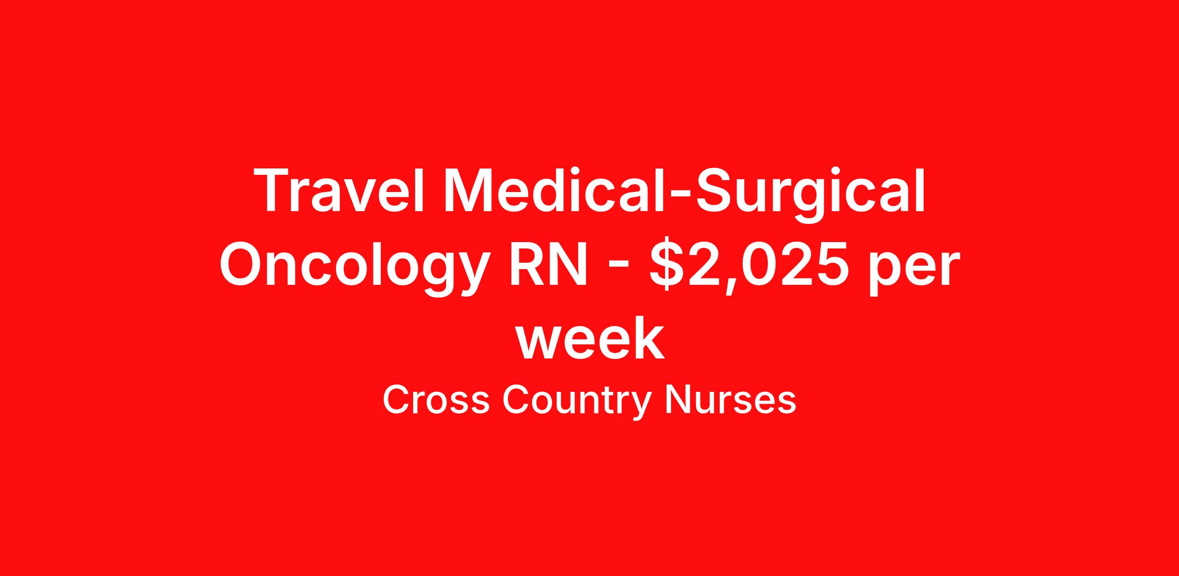 Travel Medical-Surgical Oncology RN - $2,025 per week
