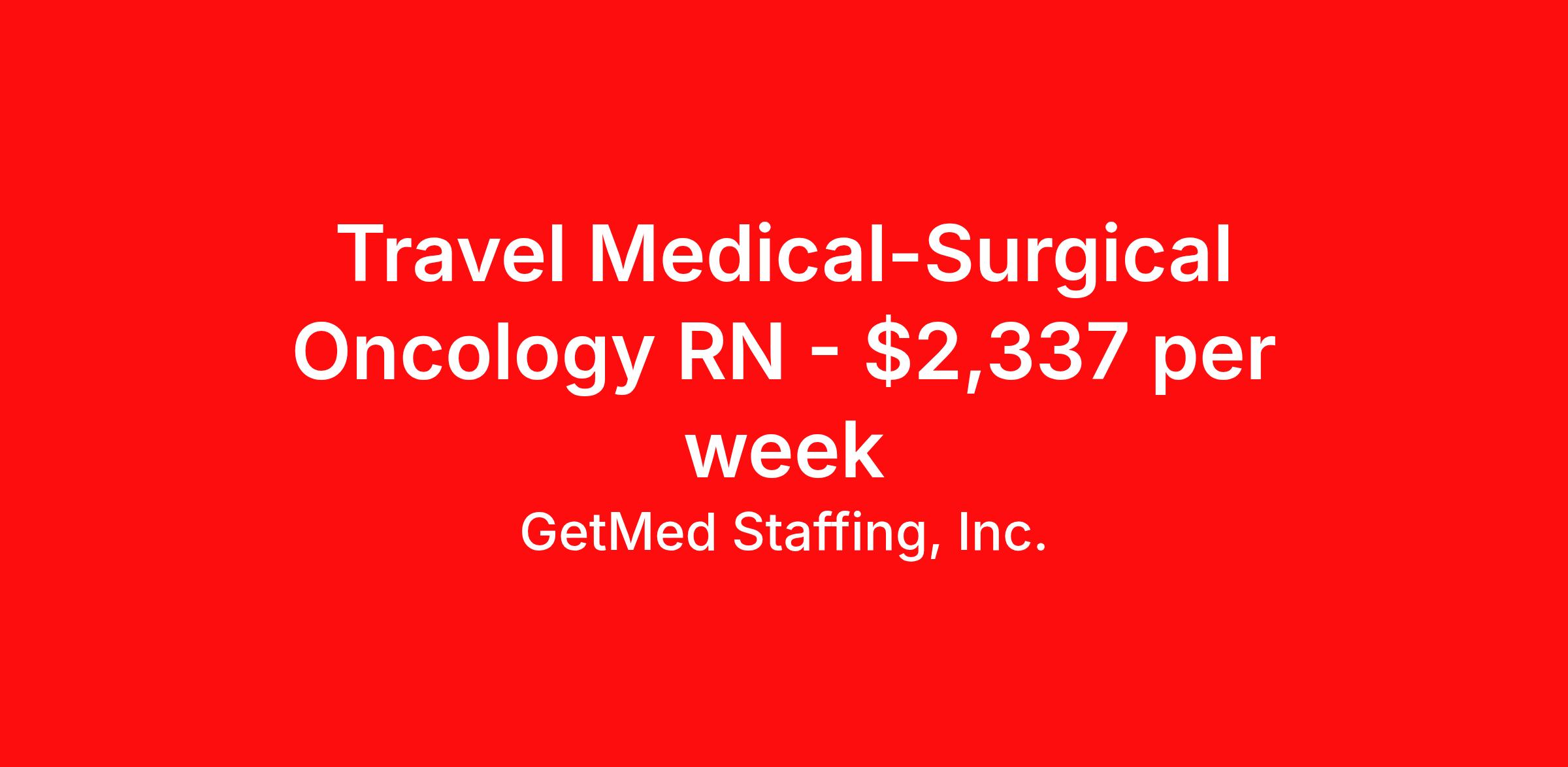 GetMed Staffing, Inc. is seeking a travel nurse RN Med Surg for a travel nursing job in Memphis, Tennessee. Job Description & Requirements Specialty: Med Surg Discipline: RN Start Date: 04/20/2026 Duration: 13 weeks 48 hours per week Shift: 12 hours, nights Employment Type: Travel GetMed Staffing is searching for a strong MedSurg RN to assist our traveler-friendly client. A minimum of 1-2 years of experience is required. Traveling with GetMed Staffing offers the unique opportunity to gain diverse experiences, both personally and professionally. Gain experience that matters. GetMed Staffing, Inc. Job ID 35899006. Pay package is based on 12 hour shifts and 48.0 hours per week (subject to confirmation) with tax-free stipend amount to be determined. Posted job title: RN:MedSurg,19:00:00-07:00:00 About GetMed Staffing, Inc. We are a diversity owned company, specializing in healthcare recruiting services. We truly understand how important a healthcare travelers' relationship is with their recruiter, as well as our relationship is with our healthcare facilities. We recognize that the needs of our healthcare travelers can vary, and therefore we provide the personalized touch necessary to ensure a successful travel assignment each and every time. Our healthcare facilities and clients benefit from us putting our healthcare travelers first. GetMed Staffing is excited to be a leader within the industry by focusing on providing healthcare travelers with more choices and possibilities as they plan for their next healthcare travel assignment. Benefits Life insurance Medical benefits Dental benefits Vision benefits 401k retirement plan