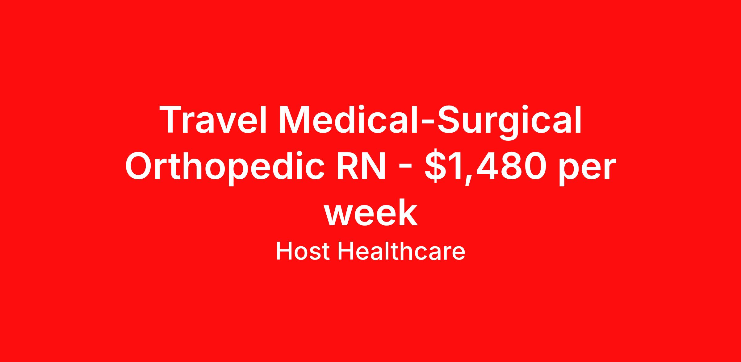 Host Healthcare is seeking a travel nurse RN Med Surg for a travel nursing job in Tulsa, Oklahoma. Job Description & Requirements Specialty: Med Surg Discipline: RN Start Date: 04/06/2026 Duration: 13 weeks 36 hours per week Shift: 12 hours, nights Employment Type: Travel Host Healthcare Job ID a1fVX000002aoQ9YAI. Pay package is based on 12 hour shifts and 36 hours per week (subject to confirmation) with tax-free stipend amount to be determined. Posted job title: RN - Medical-Surgical About Host Healthcare At Host Healthcare, we provide a truly comfortable experience as you explore your travel nursing, therapy, or allied career. We make your travel healthcare journey easy by taking care of all the details, so you don’t have to. We are on a mission to help others live better and we do this by helping the healers of the world be as comfortable as possible. With access to tens of thousands of travel nursing, therapy, and allied jobs in all 50 states, our responsive and friendly recruiters find your dream position based on what’s important to you. During your assignment, get access to premium benefits, including Day 1 medical that continues up to 30 days between assignments, 401K matching, travel reimbursements, dedicated housing support, and more. We also offer 24/7 support from our team and access to our on-staff clinicians so you can feel comfortable and confident throughout your entire assignment. Travel comfortably with Host Healthcare. Benefits Referral bonus School loan reimbursement Vision benefits Wellness and fitness programs Company provided housing options License and certification reimbursement Life insurance Medical benefits Mileage reimbursement Pet insurance Discount program Employee assistance programs Guaranteed Hours Health savings account Holiday Pay 401k retirement plan Continuing Education Dental benefits