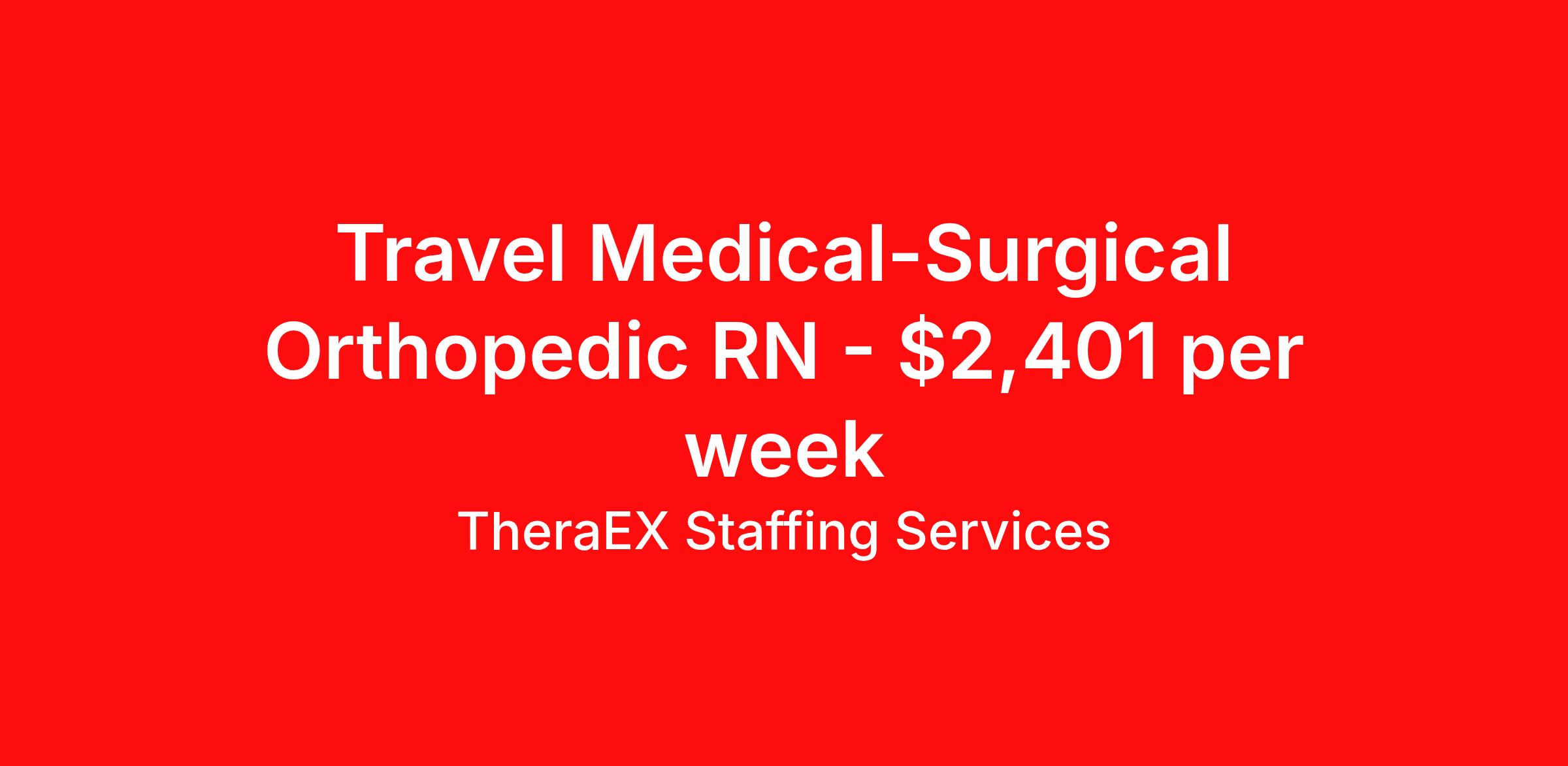 TheraEX Staffing Services is seeking a travel nurse RN Orthopedics Med Surg for a travel nursing job in Council Bluffs, Iowa. Job Description & Requirements Specialty: Orthopedics Discipline: RN Start Date: 03/30/2026 Duration: 13 weeks 36 hours per week Shift: 12 hours, nights Employment Type: Travel • 2 years of RRT experience required • Required certifications:RRT,NRP, NBRC, PALS AHA Required • Valid driver’s license, Skill checklist. • Two supervisor or manager references from the past year Shift & Contract: • Night shift , 3x12-Hour 36 GWW • Every other weekend (EOW) • Float Requirements: As Needed • 13-week contract initial duration Traveler Requirement: • To qualify as a traveler, the address on the driver’s license must be at least 60 miles from the facility location: Lake Havasu City, AZ 86403 TheraEX Staffing Services Job ID 1064018. Pay package is based on 12 hour shifts and 36 hours per week (subject to confirmation) with tax-free stipend amount to be determined. About TheraEX Staffing Services TheraEx Staffing Services is a leading name in healthcare staffing solutions. We enroll talented professionals to provide temporary staff to fill the needs of healthcare facilities across the nation. Benefits Dental benefits Vision benefits 401k retirement plan Health Care FSA Life insurance Sick pay Holiday Pay Medical benefits