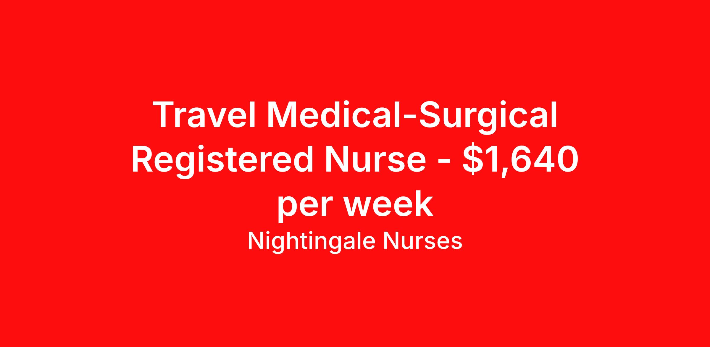 Nightingale Nurses is seeking a travel nurse RN Med Surg for a travel nursing job in Wilmington, North Carolina. Job Description & Requirements Specialty: Med Surg Discipline: RN Start Date: 03/30/2026 Duration: 13 weeks 36 hours per week Shift: 12 hours, nights Employment Type: Travel About Nightingale Nurses the first name in travel nursing You may not realize it, but as an RN with real world hospital experience, you are legendary. To the lives you’ve helped save, the patients you’ve cared for, and to the hospitals where you’ve done it. And you’re just getting started. Legendary is where Nightingale begins. We’re the first name in travel nursing, representing only the very best RNs. That’s why hospitals prefer us, allowing us to offer exceptional travel nursing assignments all over the US, as well as the highest pay rates and most extensive benefits in the industry. Nightingale facilitates every aspect of your travel nursing assignment, so you can focus on doing what you do best. We want you to grow, explore, and enjoy unrivaled liberty, the freedom to nurse.