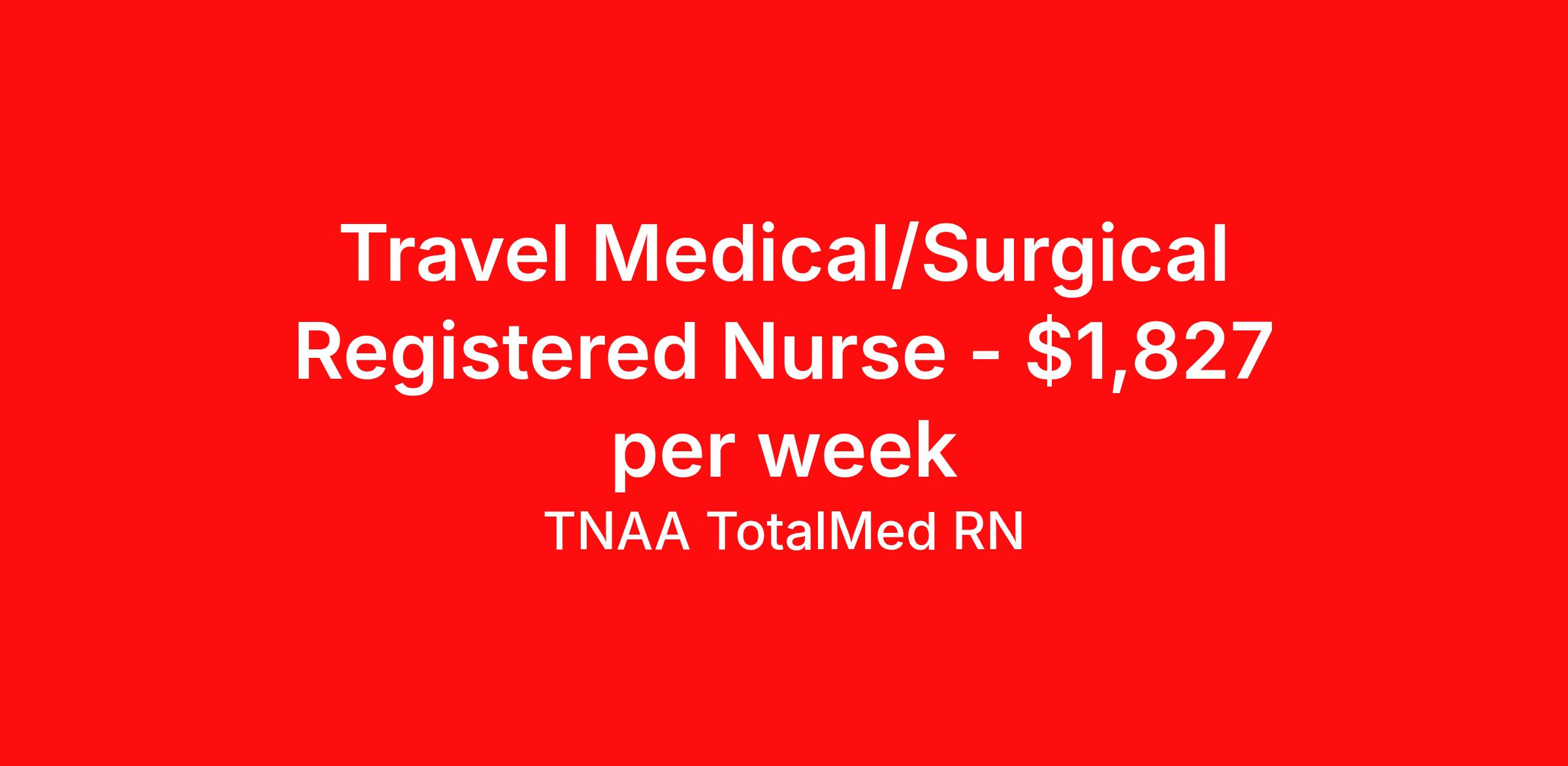 TNAA TotalMed RN is seeking a travel nurse RN Med Surg for a travel nursing job in Marquette, Michigan. Job Description & Requirements Specialty: Med Surg Discipline: RN Duration: 13 weeks 36 hours per week Shift: 12 hours, nights Employment Type: Travel We're looking for Medical Surgical RNs for an immediate travel nurse opening in Marquette, MI. The right RN should have 1-2 years recent acute care experience. Read below for more requirements. As a MedSurg RN, you will conduct patient assessments and prioritize data collection based on patients' immediate conditions or needs. MedSurg RNs perform ongoing assessments and appropriate treatments as ordered by a physician. Documenting patient findings and providing education and support to patients' families is essential to this travel nurse position. As a Medical Surgical Travel Nurse, you should be prepared to perform the following tasks: Provide bedside care for a variety of patients, including pre- and post-op patients. Prepare, administer and record prescribed medication, reporting any adverse reactions to treatment. Change dressings, insert catheters and start IVs. Prepares equipment and aids physician during examination and treatment of patient. Educates patients on surgical procedures. Participates in discharge planning and initiates patient education plan as prescribed by physician. Medical Surgical Travel Nurses should be able to stand and walk for long periods of time, as well as bend, lean and stoop without difficulty. RNs should be able to easily lift 20 pounds. Moving or lifting of patients may require lifting of up to 50 pounds at times. RNs will work in a fast-paced environment treating patients that may be confused, agitated, and/or uncooperative. Requirements*: BLS, 2 Years * Additional certifications may be required before beginning an assignment. TotalMed Travel Job ID 1394471. Pay package is based on 12 hour shifts and 36 hours per week (subject to confirmation) with tax-free stipend amount to be determined. Posted job title: Medical/Surgical - MedSurg RN - Travel Nurse About TNAA TotalMed RN TotalMed is a Top Ten, travel nursing and healthcare staffing agency with the mission of igniting purpose in healthcare. The organization staffs nurses, therapists, pharmacists, and other clinicians of all specialties in all 50 states. They offer local and travel jobs and match caregivers with the right organization to assist both facilities and patients. As an organization, they focus on putting highly-skilled staff into facilities to ensure adequate staffing for a better patient experience. TotalMed specializes in recruiting and placing healthcare professionals in travel, PRN, and permanent positions across the country in Nursing and Allied Health. Throughout 2020, the organization filled roles at even the most short-staffed facilities during the most challenging time in healthcare. By matching the right travel healthcare professional with the right organization, TotalMed continues to offer a lifeline to facilities and their patients. Benefits Weekly pay Guaranteed Hours Continuing Education 401k retirement plan Sick pay Wellness and fitness programs Referral bonus Employee assistance programs Medical benefits Dental benefits Vision benefits Benefits start day 1