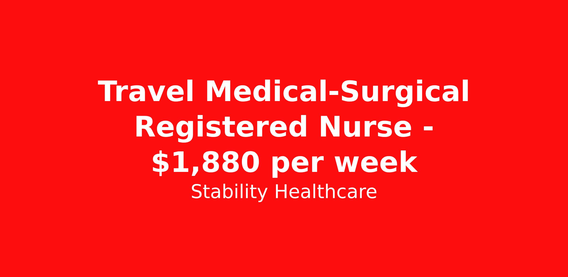Stability Healthcare is seeking a travel nurse RN Med Surg for a travel nursing job in Burlington, North Carolina. Job Description & Requirements Specialty: Med Surg Discipline: RN Duration: 13 weeks 36 hours per week Shift: 12 hours, nights Employment Type: Travel Stability Healthcare is looking for a Med-Surg RN contract position in Burlington, NC. The majority of hospitalized patients are admitted to M/S either directly or after surgery. M/S is also where patients who have been in critical care (ICU) are transferred when they no longer need critical care but still require nursing care. *$600 travel bonus *Day 1 health insurance with United Healthcare *PTO plan start accruing on day 1, use during contract or cash out at the end! *Guaranteed stipend if facility calls you off *Extra hour bonus earn an additional hourly bonus for working over your weekly contracted hours Stability Job ID 820291. Pay package is based on 12 hour shifts and 36 hours per week (subject to confirmation) with tax-free stipend amount to be determined. Posted job title: Med-Surg About Stability Healthcare Stability Healthcare was founded in 2009, with the mission of becoming the best Travel Nursing Agency in California. We have been rated one of the top travel nursing agencies and offer our nurses the highest paying travel nursing jobs available. We have access to the best travel assignments from 1000’s of facilities. You can start the year off in sunny California, spend the Spring in the Colorado Rockies, enjoy the Summer in the Mid-West, experience the change of seasons in Boston and New York, and hit the beaches of Florida in the winter. Our Nurses work in the best hospitals and health systems in the country. Benefits Guaranteed Hours Benefits start day 1