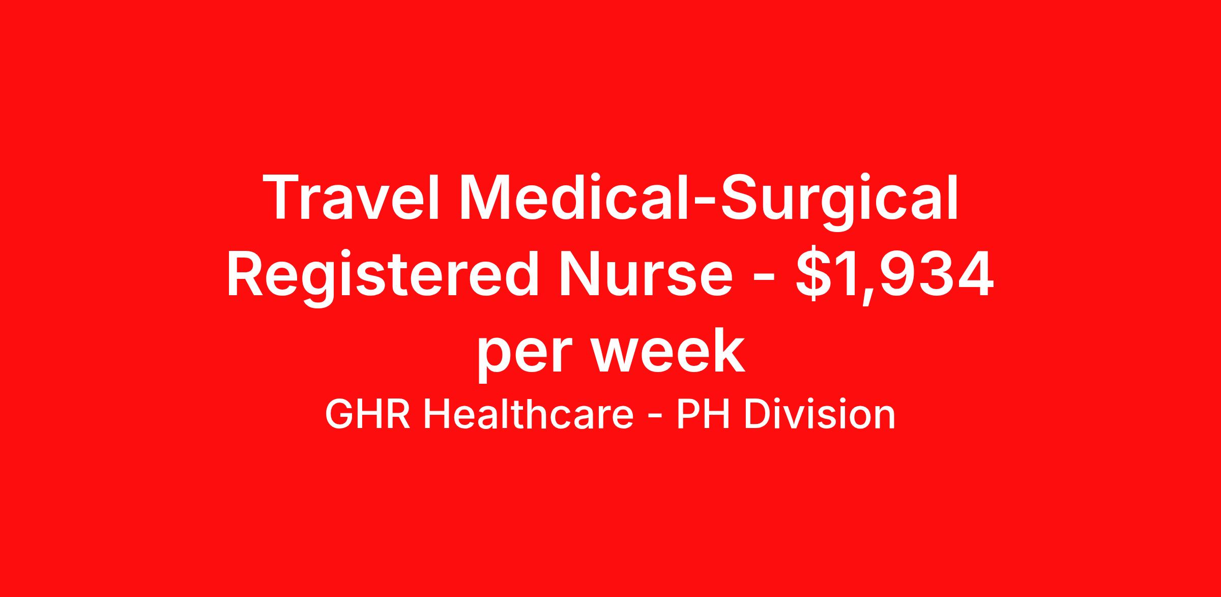GHR Healthcare - PH Division is seeking a travel nurse RN Med Surg for a travel nursing job in Burlington, North Carolina. Job Description & Requirements Specialty: Med Surg Discipline: RN Start Date: 04/06/2026 Duration: 13 weeks 36 hours per week Shift: 12 hours Employment Type: Travel Planet Healthcare Job ID 76178098. Pay package is based on 12 hour shifts and 36 hours per week (subject to confirmation) with tax-free stipend amount to be determined. About GHR Healthcare - PH Division For over 30 years, GHR Healthcare has been the bridge between healthcare professionals and the facilities that need them nationwide. We're committed to uncovering your ideal fit, supported by GHR's dedication to competitive compensation, transparent communication, and a devoted team that genuinely cares about your career journey. You can trust us to stand by your side as your advocate, confidante, and partner in advancing your career. At GHR, care and consideration are at the heart of everything we do. Visit ghrhealthcare.com to learn more.