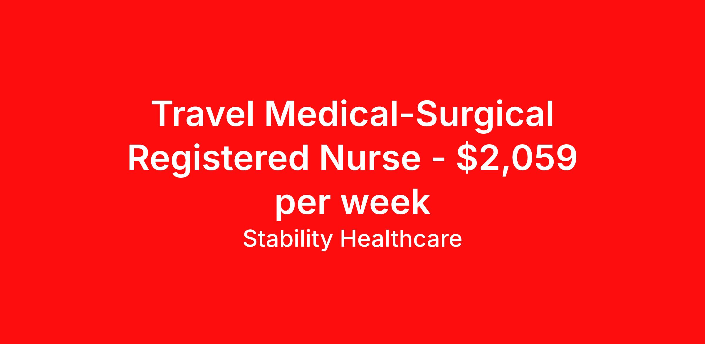 Stability Healthcare is seeking a travel nurse RN Med Surg / Telemetry for a travel nursing job in Kalamazoo, Michigan. Job Description & Requirements Specialty: Med Surg / Telemetry Discipline: RN Start Date: 04/20/2026 Duration: 13 weeks 36 hours per week Shift: 12 hours, nights Employment Type: Travel Stability Healthcare is looking for a Med-Surg RN contract position in Kalamazoo, MI. The majority of hospitalized patients are admitted to M/S either directly or after surgery. M/S is also where patients who have been in critical care (ICU) are transferred when they no longer need critical care but still require nursing care. *$600 travel bonus *Day 1 health insurance with United Healthcare *PTO plan start accruing on day 1, use during contract or cash out at the end! *Guaranteed stipend if facility calls you off *Extra hour bonus earn an additional hourly bonus for working over your weekly contracted hours Stability Job ID 828541. Pay package is based on 12 hour shifts and 36 hours per week (subject to confirmation) with tax-free stipend amount to be determined. Posted job title: Med-Surg About Stability Healthcare Stability Healthcare was founded in 2009, with the mission of becoming the best Travel Nursing Agency in California. We have been rated one of the top travel nursing agencies and offer our nurses the highest paying travel nursing jobs available. We have access to the best travel assignments from 1000’s of facilities. You can start the year off in sunny California, spend the Spring in the Colorado Rockies, enjoy the Summer in the Mid-West, experience the change of seasons in Boston and New York, and hit the beaches of Florida in the winter. Our Nurses work in the best hospitals and health systems in the country. Benefits Guaranteed Hours Benefits start day 1
