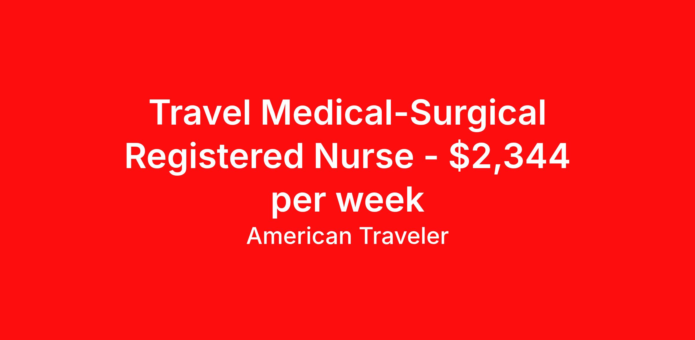 American Traveler is seeking a travel nurse RN Med Surg for a travel nursing job in Minot, North Dakota. Job Description & Requirements Specialty: Med Surg Discipline: RN Start Date: 05/04/2026 Duration: 13 weeks 36 hours per week Shift: 12 hours, flexible Employment Type: Travel Assignment Overview Shift: Variable, 3x12hrs Hours: 36 hrs/wk Start Date: May 4, 2026 Length: 13 weeks Openings: 1 Description American Traveler is seeking an experienced RN for a Med/Surg position on a Medical Nursing unit, requiring an active ND or Compact RN license for a 13-week travel assignment. Details Medical Nursing unit within a hospital setting 12-hour shifts with any shift availability (days, evenings, or nights) 13-week travel contract Requirements Active ND or Compact RN license currently in hand Current BLS certification required Prior Med/Surg nursing experience required Additional Information Position is located in Minot, ND American Traveler Job ID P-684213. Pay package is based on 12 hour shifts and 36 hours per week (subject to confirmation) with tax-free stipend amount to be determined. Posted job title: Travel RN - Med/Surg About American Traveler With over 25 years of experience, American Traveler has established a reputation for outstanding customer service. Our team ensures a smooth, worry-free experience for those starting on or expanding their travel nursing and allied careers. With thousands of travel nursing and allied jobs nationwide, our attentive and approachable recruiters find positions that align perfectly with your career aspirations and personal requirements. American Traveler offers exceptional benefits, including premium medical, dental, vision and life insurance beginning day one of your assignment, generous 401(k) match, substantial housing stipends, and more. Additionally, with 24/7 support and access to our in-house clinicians, you are assured confidence and comfort throughout your assignment. With our team behind you, you can relax and enjoy a rewarding travel career.