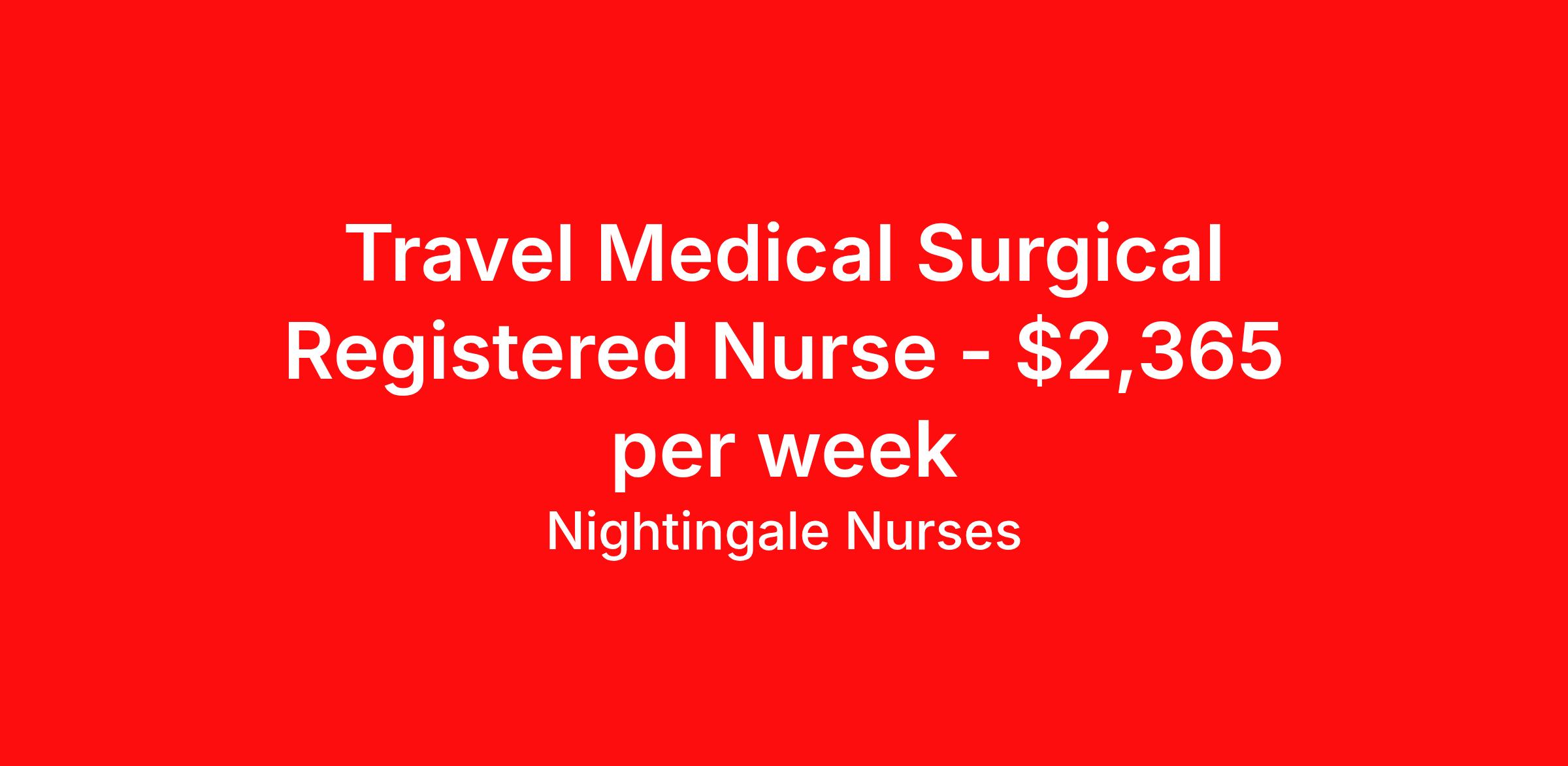 Travel Medical Surgical Registered Nurse - $2,365 per week