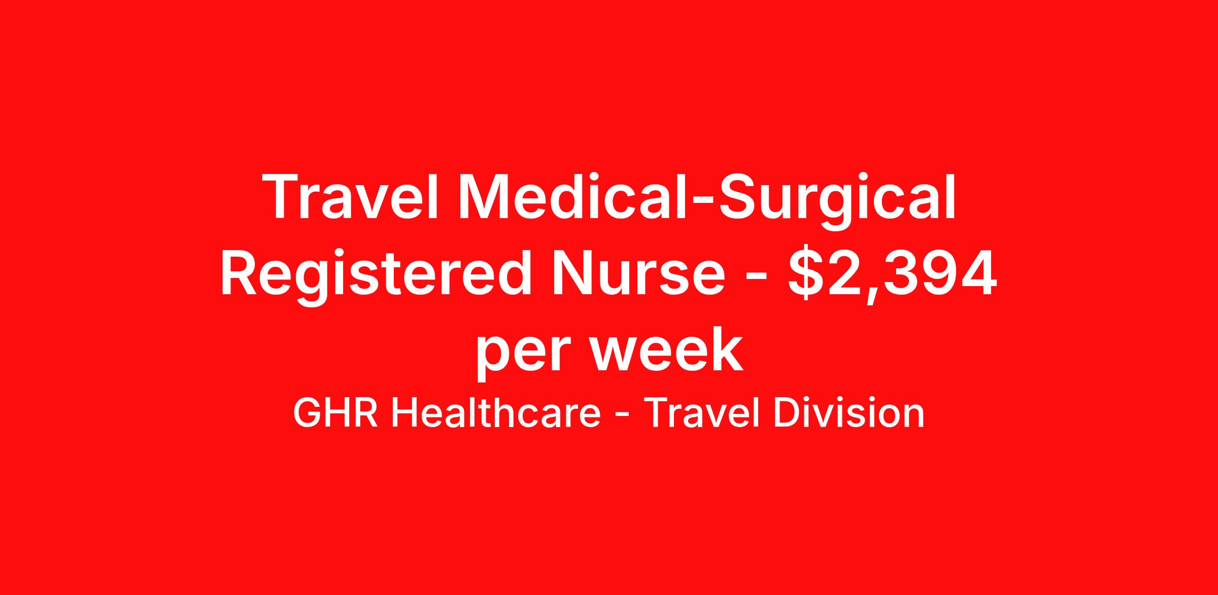 GHR Healthcare - Travel Division is seeking a travel nurse RN Med Surg for a travel nursing job in Lebanon, New Hampshire. Job Description & Requirements Specialty: Med Surg Discipline: RN Start Date: 04/13/2026 Duration: 12 weeks 36 hours per week Shift: 12 hours Employment Type: Travel GHR Healthcare - Travel Division Job ID 75841912. Pay package is based on 12 hour shifts and 36 hours per week (subject to confirmation) with tax-free stipend amount to be determined. About GHR Healthcare - Travel Division For over 30 years, GHR Healthcare has been the bridge between healthcare professionals and the facilities that need them nationwide. We're committed to uncovering your ideal fit, supported by GHR's dedication to competitive compensation, transparent communication, and a devoted team that genuinely cares about your career journey. You can trust us to stand by your side as your advocate, confidante, and partner in advancing your career. At GHR, care and consideration are at the heart of everything we do. Visit ghrhealthcare.com to learn more.