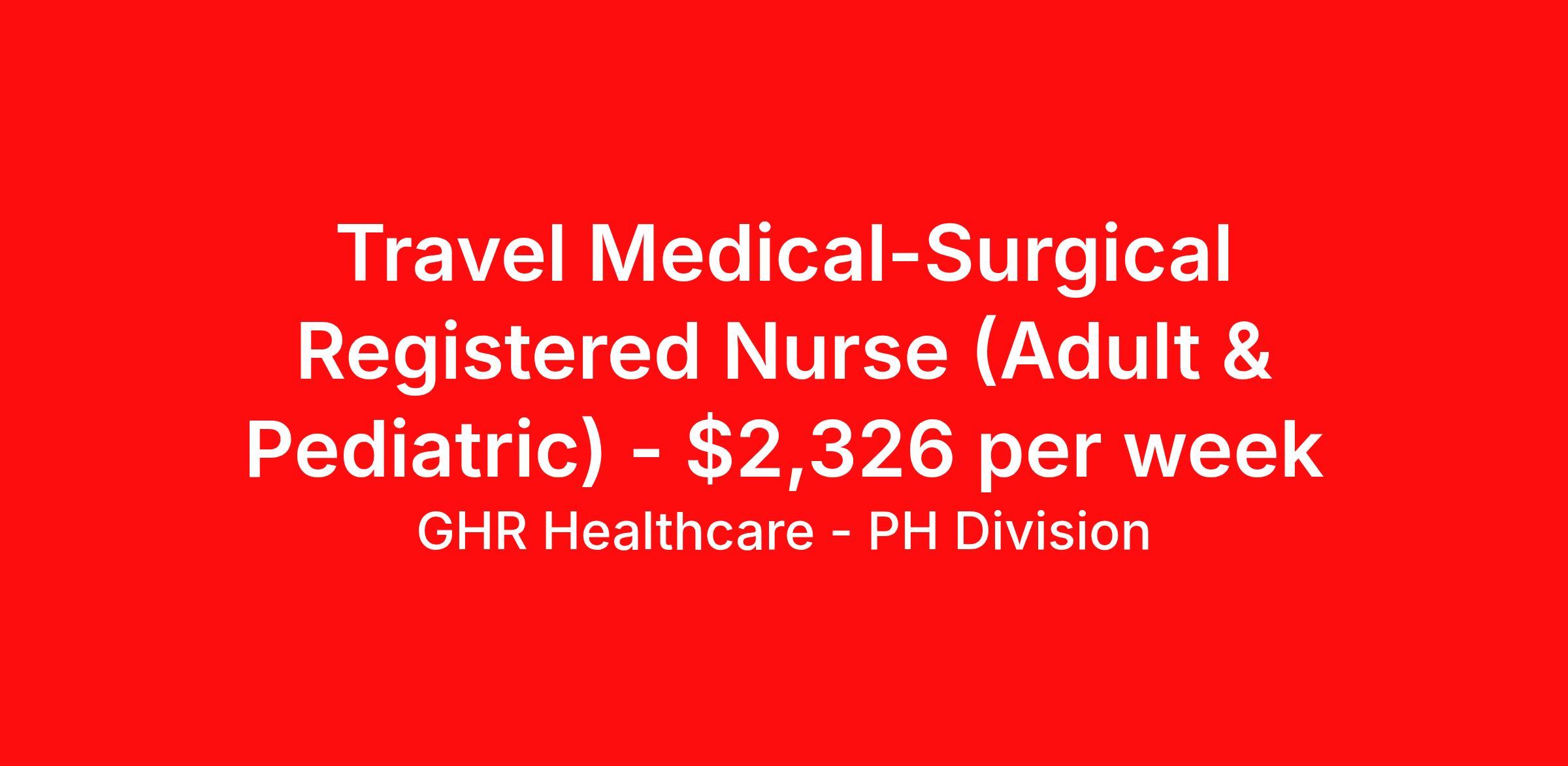 GHR Healthcare - PH Division is seeking a travel nurse RN Med Surg for a travel nursing job in Fort Defiance, Arizona. Job Description & Requirements Specialty: Med Surg Discipline: RN Start Date: 03/23/2026 Duration: 13 weeks 36 hours per week Shift: 12 hours Employment Type: Travel Med/Surg Registered Nurse (RN) – Travel Nurse | Fort Defiance, AZ (86504) Med/Surg RN (Travel Nurse) in Fort Defiance, AZ — 13-week travel contract. Requires active RN license, AHA BLS/ACLS/PALS, 3 years Med/Surg experience and 1 year pediatric experience. Join a dedicated healthcare team in the heart of Fort Defiance, Arizona, caring for both adult and pediatric patients. Experience the high desert, the cultural heritage of the Navajo Nation, and a supportive clinical environment while working a rewarding travel nursing job. Job Details Location: Fort Defiance, AZ 86504 (Navajo Nation) Role: Medical-Surgical Registered Nurse (RN) – Travel Nurse / Travel RN Setting: 20-bed Medical Surgical Unit (Adults & Pediatrics) Employment Type: Travel Contract (travel nursing job) Duration: 13 weeks (March 23, 2026 – June 22, 2026) Shift: 12-hour Night Shifts (must be flexible for days, weekends, and holidays) Hours per Week: 36 guaranteed (alternating weeks of 36 and 48 hours, plus up to 1 on-call shift/week) Estimated Weekly Salary: $2,130 - $2,250/week Staffing Ratios: Non-COVID: typically 4:1, max 5:1; COVID: typically 2:1, max 3:1 Orientation: Mondays only Number of Openings: 2 Travel RN positions Qualifications / Job Requirements Active Registered Nurse (RN) license (valid for practice in Arizona or compact status as applicable) American Heart Association BLS, ACLS, and PALS certifications required Minimum 3 years of Med/Surg nursing experience At least 1 year of pediatric nursing experience; comfortable caring for both adult and pediatric patients Strong clinical assessment, medication administration, and documentation (EMR) skills Ability to float to other departments and perform task-oriented duties Willingness to attend staff meetings, mandatory orientation, and ongoing training Flexible schedule: able to work days, nights, weekends, and holidays as needed Responsibilities Deliver safe, patient-centered nursing care to adult and pediatric patients on the Med/Surg unit Perform clinical assessments, implement nursing plans, and document care in the EMR Administer medications, IV therapies, and treatments per facility policies Support inpatient care and assist with flu immunization clinics as needed Float to other departments and assist with unit tasks (answering call lights, phones, patient transport, etc.) Maintain excellent staffing ratios to ensure patient safety and quality outcomes Participate in staff meetings, competency training, and quality improvement initiatives Adhere to facility policies, infection control, and patient privacy standards Why This Travel Nursing Job? Work as a travel RN in a culturally rich community on the Navajo Nation Opportunity to care for both adults and pediatrics in a close-knit Med/Surg team Experience Arizona nursing and outdoor recreation in the high desert Supportive clinical environment with clear orientation and predictable schedules Apply now to join our healthcare team as a Med/Surg Registered Nurse (Travel RN) in Fort Defiance, AZ. Click apply to submit your resume or contact our recruiter for more details about this Arizona travel nurse opportunity. Benefits 401K with Matching, Healthcare, Dental and Vision Equal Opportunity We are an equal opportunity employer and value diversity across our organization. We do not discriminate on the basis of race, religion, color, national origin, gender, sexual orientation, age, marital status, veteran status, or disability status. Planet Healthcare Job ID 465976. Pay package is based on 12 hour shifts and 36 hours per week (subject to confirmation) with tax-free stipend amount to be determined. Posted job title: Med/Surg About GHR Healthcare - PH Division For over 30 years, GHR Healthcare has been the bridge between healthcare professionals and the facilities that need them nationwide. We're committed to uncovering your ideal fit, supported by GHR's dedication to competitive compensation, transparent communication, and a devoted team that genuinely cares about your career journey. You can trust us to stand by your side as your advocate, confidante, and partner in advancing your career. At GHR, care and consideration are at the heart of everything we do. Visit ghrhealthcare.com to learn more.