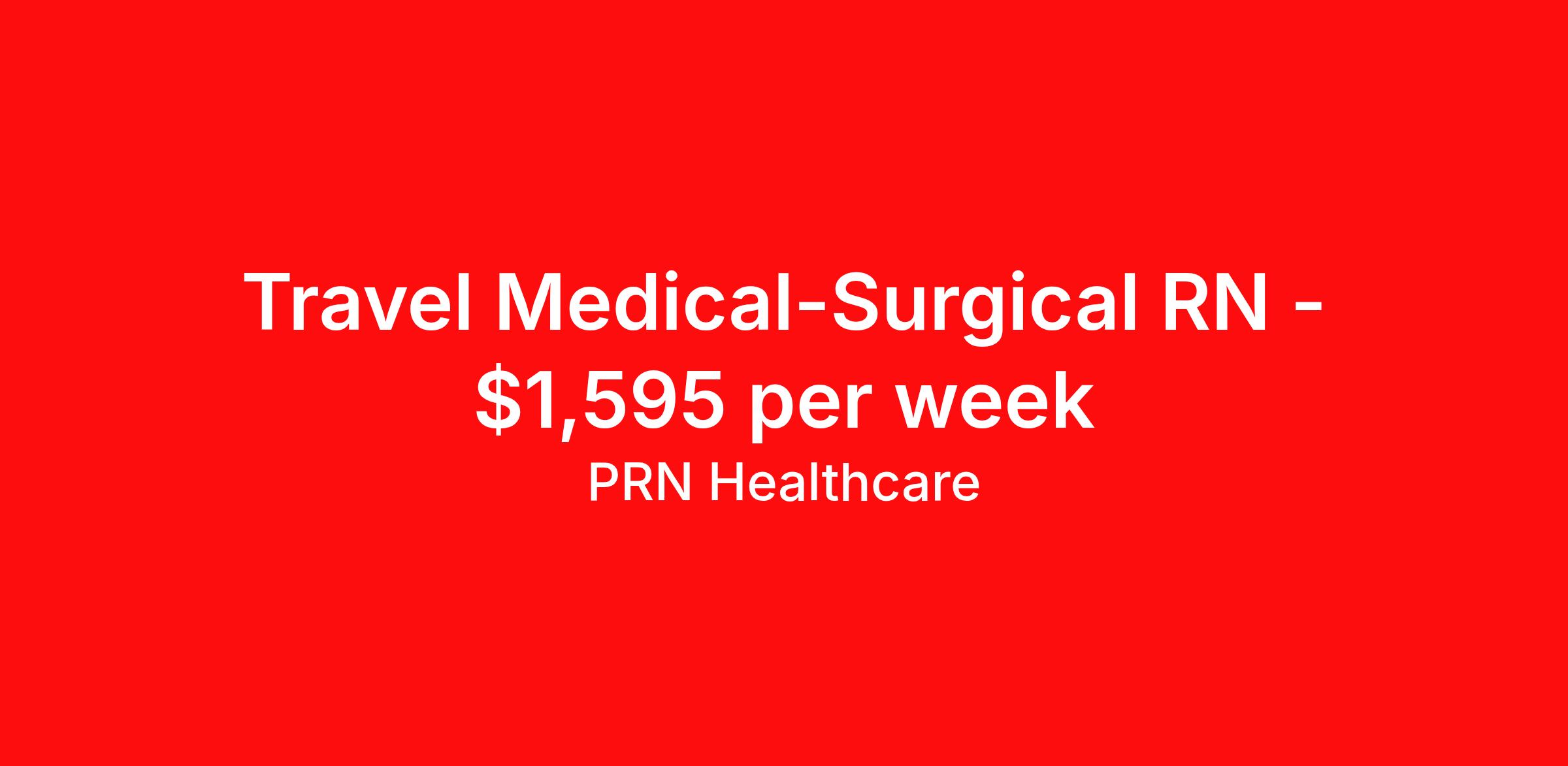 PRN Healthcare is seeking a travel nurse RN Med Surg for a travel nursing job in Tulsa, Oklahoma. Job Description & Requirements Specialty: Med Surg Discipline: RN Start Date: 04/06/2026 Duration: 13 weeks 36 hours per week Shift: 12 hours, nights Employment Type: Travel PRN Healthcare Job ID 1512964. Pay package is based on 12 hour shifts and 36 hours per week (subject to confirmation) with tax-free stipend amount to be determined. Posted job title: M/S RN About PRN Healthcare Our story starts with a 21-year-old CNA named Pete Hietpas. Pete was diligently working in eastern Wisconsin with a variety of staffing agencies, but something was missing. He loved caring for his patients, but felt that staffing agencies were exchanging compassion for competitiveness. He was determined to change that. As a result, he started Nurses PRN in 1995 to become a model for the healthcare staffing industry – being competitive in the marketplace, yet still maintaining a compassionate heart. Over the years Nurses PRN grew and evolved as a nationwide healthcare staffing company, and therefore wanted to be more inclusive to all valued healthcare professionals: nurses, allied health, locum tenens, CNAs, and more. This lead to the introduction of PRN Healthcare, which is inclusive of Nurses PRN and all of our other healthcare divisions. Our mission to create authentic, meaningful relationships with our healthcare professionals helps us set them up for success in their dream assignment, whether that be a travel contract, local contract, or per diem shift. This is all driven by the simple idea that better care for our healthcare workers, leads to better patient care – and this is all supported by a dedicated internal staff. Our company culture is strongly backed by faith-based values and activities, to remind us that our success provides us the opportunity to serve and give back to our communities. This is the spirit of caregiving. This is PRN Healthcare. Benefits Weekly pay Guaranteed Hours Continuing Education 401k retirement plan Referral bonus Employee assistance programs Company provided housing options Medical benefits Dental benefits Vision benefits Life insurance