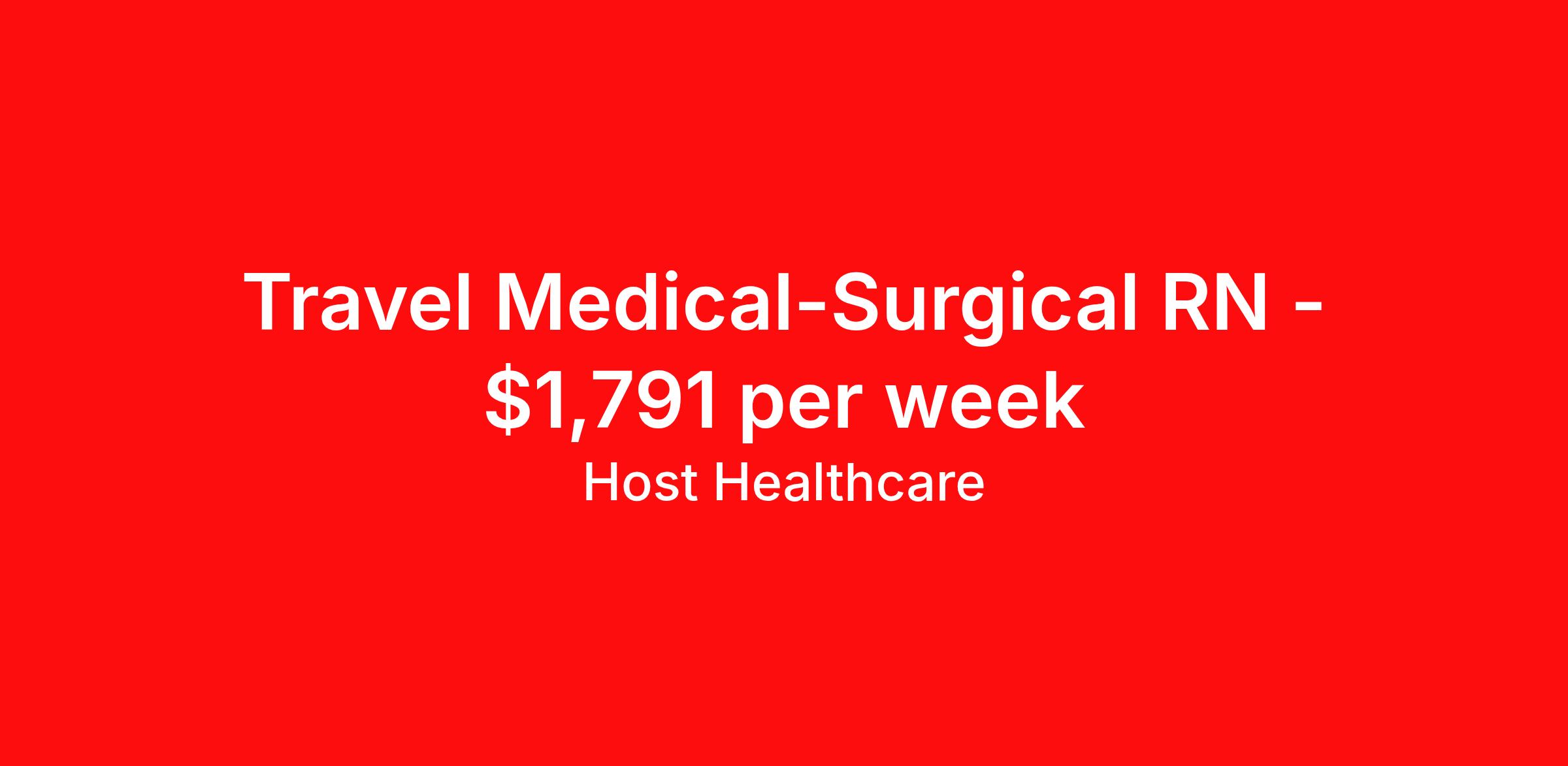 Host Healthcare is seeking a travel nurse RN Med Surg for a travel nursing job in St. Louis, Missouri. Job Description & Requirements Specialty: Med Surg Discipline: RN Start Date: 03/31/2026 Duration: 26 weeks 36 hours per week Shift: 12 hours, days Employment Type: Travel Host Healthcare Job ID a1fVX000002vY5RYAU. Pay package is based on 12 hour shifts and 36 hours per week (subject to confirmation) with tax-free stipend amount to be determined. Posted job title: RN - Medical-Surgical About Host Healthcare At Host Healthcare, we provide a truly comfortable experience as you explore your travel nursing, therapy, or allied career. We make your travel healthcare journey easy by taking care of all the details, so you don’t have to. We are on a mission to help others live better and we do this by helping the healers of the world be as comfortable as possible. With access to tens of thousands of travel nursing, therapy, and allied jobs in all 50 states, our responsive and friendly recruiters find your dream position based on what’s important to you. During your assignment, get access to premium benefits, including Day 1 medical that continues up to 30 days between assignments, 401K matching, travel reimbursements, dedicated housing support, and more. We also offer 24/7 support from our team and access to our on-staff clinicians so you can feel comfortable and confident throughout your entire assignment. Travel comfortably with Host Healthcare. Benefits Referral bonus School loan reimbursement Vision benefits Wellness and fitness programs Company provided housing options License and certification reimbursement Life insurance Medical benefits Mileage reimbursement Pet insurance Discount program Employee assistance programs Guaranteed Hours Health savings account Holiday Pay 401k retirement plan Continuing Education Dental benefits