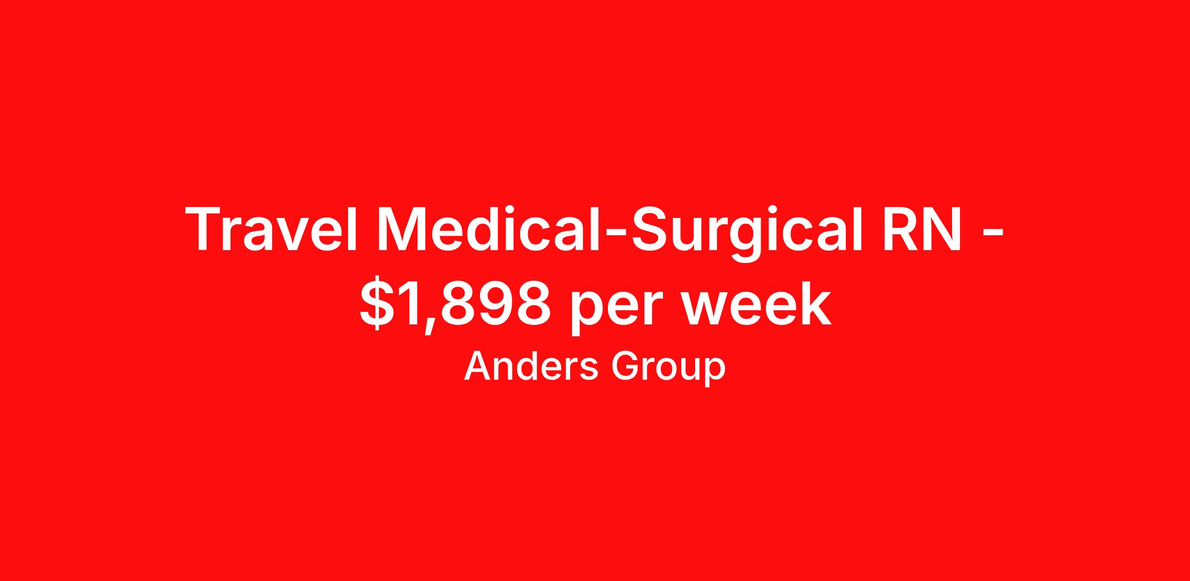 Anders Group is seeking a travel nurse RN Med Surg for a travel nursing job in Vicksburg, Mississippi. Job Description & Requirements Specialty: Med Surg Discipline: RN Start Date: ASAP Duration: 13 weeks 36 hours per week Shift: 12 hours, nights Employment Type: Travel Anders Group Job ID 994561. Pay package is based on 12 hour shifts and 36 hours per week (subject to confirmation) with tax-free stipend amount to be determined. Posted job title: CHS Travel:Registered Nurse (RN) / Medical Surgical NIGHTS About Anders Group WHY ANDERS? Anders Group is a Joint Commission accredited staffing agency and stands out from other agencies by our commitment to making sure our travelers are given the best customer service. Our team works hard to find the best jobs with the most aggressive rates! Anders Group offers rewarding assignments and competitive compensation packages, nationwide! We offer the following benefits from day one: Health Insurance, Including a Buy-up Option Dental Insurance Vision Insurance Life Insurance 401(k) Licensure Reimbursement Premium Pay Packages CEU Reimbursements Daily Per Diems Travel Reimbursements Rental Car Allowances Continuing Education Resources Referral Bonus And Many More! THE ANDERS DIFFERENCE You're committed to providing exceptional healthcare. We're committed to you. Anders Group was founded by a team of healthcare recruiters who had built strong relationships with healthcare facilities and professionals nationwide. As staffing firms shifted their focus to numbers and margins, these recruiters saw a need for a company to take a different approach to staffing. Anders Group was founded in 2010 to do just that. We focus on individual and facility goals to make quality placements. Great people working with great facilities make for the best placements. Through our focus on providing the best experience to Allied and Nursing health care professionals, Anders Group has grown to be a top staffing firm in Healthcare. We look forward to working with you! Benefits Medical benefits Dental benefits Vision benefits Life insurance 401k retirement plan License and certification reimbursement Continuing Education Referral bonus