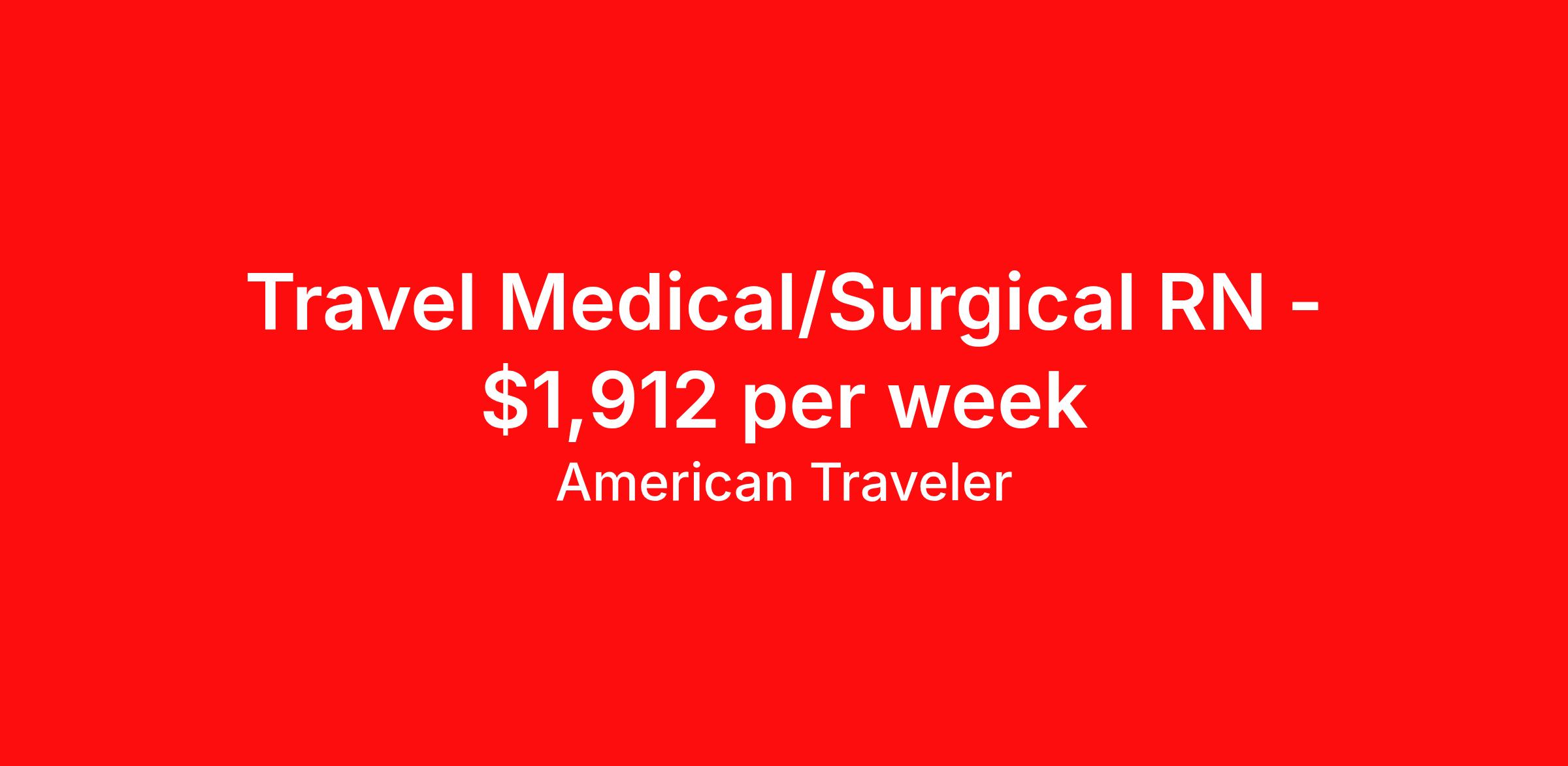 American Traveler is seeking a travel nurse RN Med Surg for a travel nursing job in Wichita, Kansas. Job Description & Requirements Specialty: Med Surg Discipline: RN Start Date: 04/05/2026 Duration: 13 weeks 36 hours per week Shift: 12 hours, days Employment Type: Travel Assignment Overview Shift: Days, 3x12hrs Hours: 36 hrs/wk Start Date: Apr 5, 2026 Length: 13 weeks Openings: 1 Description American Traveler is hiring a travel RN for a Med/Surg Stepdown/Intermediate Care position at a Level I Trauma Center in Wichita, KS, requiring at least 2 years of experience and a KS or compact RN license. Details 52-bed general med/surg and observation unit operating as a Stepdown/Intermediate Care unit Located at a Level I Trauma Center Day shift: 07:00–19:30 13-week contract Uses Cerner EHR Ceil blue scrubs required Requirements Active KS RN license or compact RN license currently in hand Minimum 2 years of RN experience required BLS certification required (must be AHA-issued) NIH Stroke Scale (NIHSS) certification required MOAB Moderate Risk De-Escalation Training required Valid US Social Security Number and US home address required Copy of Driver's License required for consideration Two professional references required for consideration Additional Information Provides nursing care in a general med/surg and observation stepdown setting Local candidates are accepted; however, candidates residing within the facility's radius may be subject to a reduced pay rate COVID vaccination is not required for this position American Traveler Job ID P-683328. Pay package is based on 12 hour shifts and 36 hours per week (subject to confirmation) with tax-free stipend amount to be determined. Posted job title: Travel RN - Med/Surg About American Traveler With over 25 years of experience, American Traveler has established a reputation for outstanding customer service. Our team ensures a smooth, worry-free experience for those starting on or expanding their travel nursing and allied careers. With thousands of travel nursing and allied jobs nationwide, our attentive and approachable recruiters find positions that align perfectly with your career aspirations and personal requirements. American Traveler offers exceptional benefits, including premium medical, dental, vision and life insurance beginning day one of your assignment, generous 401(k) match, substantial housing stipends, and more. Additionally, with 24/7 support and access to our in-house clinicians, you are assured confidence and comfort throughout your assignment. With our team behind you, you can relax and enjoy a rewarding travel career.