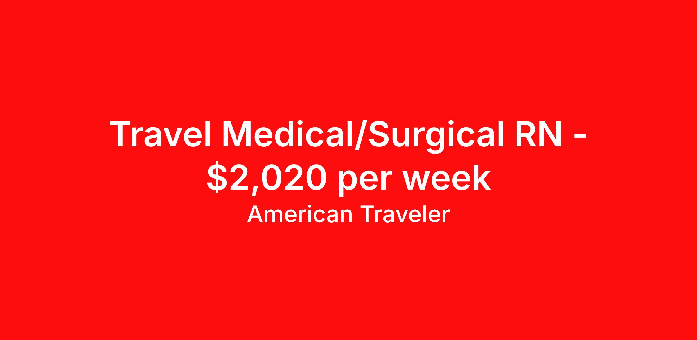 American Traveler is seeking a travel nurse RN Med Surg for a travel nursing job in Baltimore, Maryland. Job Description & Requirements Specialty: Med Surg Discipline: RN Start Date: 04/13/2026 Duration: 13 weeks 36 hours per week Shift: 12 hours, nights Employment Type: Travel Assignment Overview Shift: Nights, 3x12hrs Hours: 36 hrs/wk Start Date: Apr 13, 2026 Length: 13 weeks Openings: 1 Description American Traveler is seeking a travel RN for a Medical/Surgical (Med A) position requiring Epic experience and working 12-hour night shifts with every other weekend availability. Details Hospital-based Medical/Surgical (Med A) unit 12-hour night shifts from 7:00 PM to 7:30 AM Every other weekend required Holiday coverage required as needed No on-call responsibilities 13-week contract Requirements Active RN license (Maryland or Compact) currently in hand Current BLS certification required Epic EMR experience required Experience at a comparable facility size (500 bed count) preferred for large academic medical center placements SSN and DOB required for consideration One professional reference required for consideration Additional Information Local candidates are accepted at the same bill rate Candidates must provide an active license for consideration American Traveler Job ID P-683718. Pay package is based on 12 hour shifts and 36 hours per week (subject to confirmation) with tax-free stipend amount to be determined. Posted job title: Travel RN - Med/Surg About American Traveler With over 25 years of experience, American Traveler has established a reputation for outstanding customer service. Our team ensures a smooth, worry-free experience for those starting on or expanding their travel nursing and allied careers. With thousands of travel nursing and allied jobs nationwide, our attentive and approachable recruiters find positions that align perfectly with your career aspirations and personal requirements. American Traveler offers exceptional benefits, including premium medical, dental, vision and life insurance beginning day one of your assignment, generous 401(k) match, substantial housing stipends, and more. Additionally, with 24/7 support and access to our in-house clinicians, you are assured confidence and comfort throughout your assignment. With our team behind you, you can relax and enjoy a rewarding travel career.
