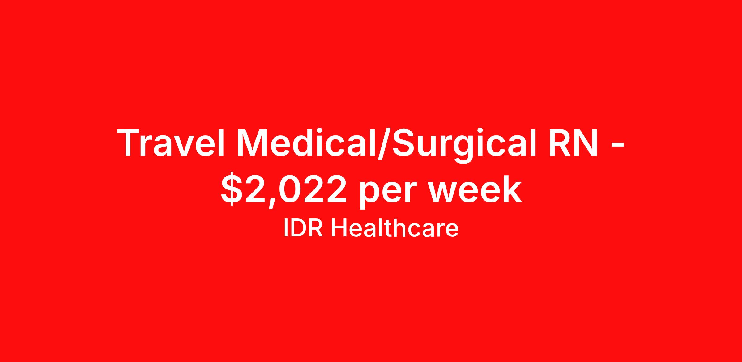 IDR Healthcare is seeking a travel nurse RN Med Surg for a travel nursing job in Cleveland, Ohio. Job Description & Requirements Specialty: Med Surg Discipline: RN Start Date: ASAP Duration: 13 weeks 36 hours per week Shift: 12 hours Employment Type: Travel IDR Healthcare is an awarding winning staffing firm that believes it is a privilege and awesome responsibility to serve those who selflessly care for others. Our mission is to empower healthcare professionals to achieve their fullest potential both personally and professionally while they create positive change within the healthcare community. We exercise true grit, tenacity, and authenticity while embracing and ownership mindset to go above and beyond providing healthcare professionals a world class experience. We are employee owned and our travelers and clinicians earn shares/equity by just completing multiple assignments! We have been named SIA’s Fastest Growing Staffing Firms and have won ClearlyRated® Best of Staffing for 11 consecutive years! This cements our commitment to clinician satisfaction earning top net promoter scores putting us in the top 2% of agencies in North America! TravelFarWithIDR and see what an extraordinary experience is all about! Benefits 2024 World Staffing Best Staffing Firms to Work For! ESOP (Equity) Healthcare Benefits for up to 30 days Between Assignments. Comprehensive Health Insurance Dental and Vision Insurance Sign-On, Completion, & Referral Bonus Programs License and Certification Reimbursement Weekly Pay and Competitive Compensation Large Network of Clients and Job Opportunities 401k retirement plan Exclusive Assignments IDR Job ID 410943. Pay package is based on 12 hour shifts and 36 hours per week (subject to confirmation) with tax-free stipend amount to be determined. About IDR Healthcare IDR Healthcare is an awarding winning staffing firm that believes it is a privilege and awesome responsibility to serve those who selflessly care for others. Our mission is to empower healthcare professionals to achieve their fullest potential both personally and professionally while they create positive change within the healthcare community. We exercise true grit, tenacity, and authenticity while embracing and ownership mindset to go above and beyond providing healthcare professionals a world class experience. We are employee owned and our travelers and clinicians earn shares/equity by just completing multiple assignments! We have been named SIA’s Fastest Growing Staffing Firms and have won ClearlyRated® Best of Staffing for 11 consecutive years! This cements our commitment to clinician satisfaction earning top net promoter scores putting us in the top 2% of agencies in North America! Help us give back! For every booked assignment, proceeds are donated to St. Jude and Feeding America! Last year we raised over $18,000 for St. Jude and provided over 49,000 meals for children in need. TravelFarWithIDR and see what it is all about! Benefits Weekly pay 401k retirement plan Referral bonus Medical benefits Dental benefits License and certification reimbursement Vision benefits