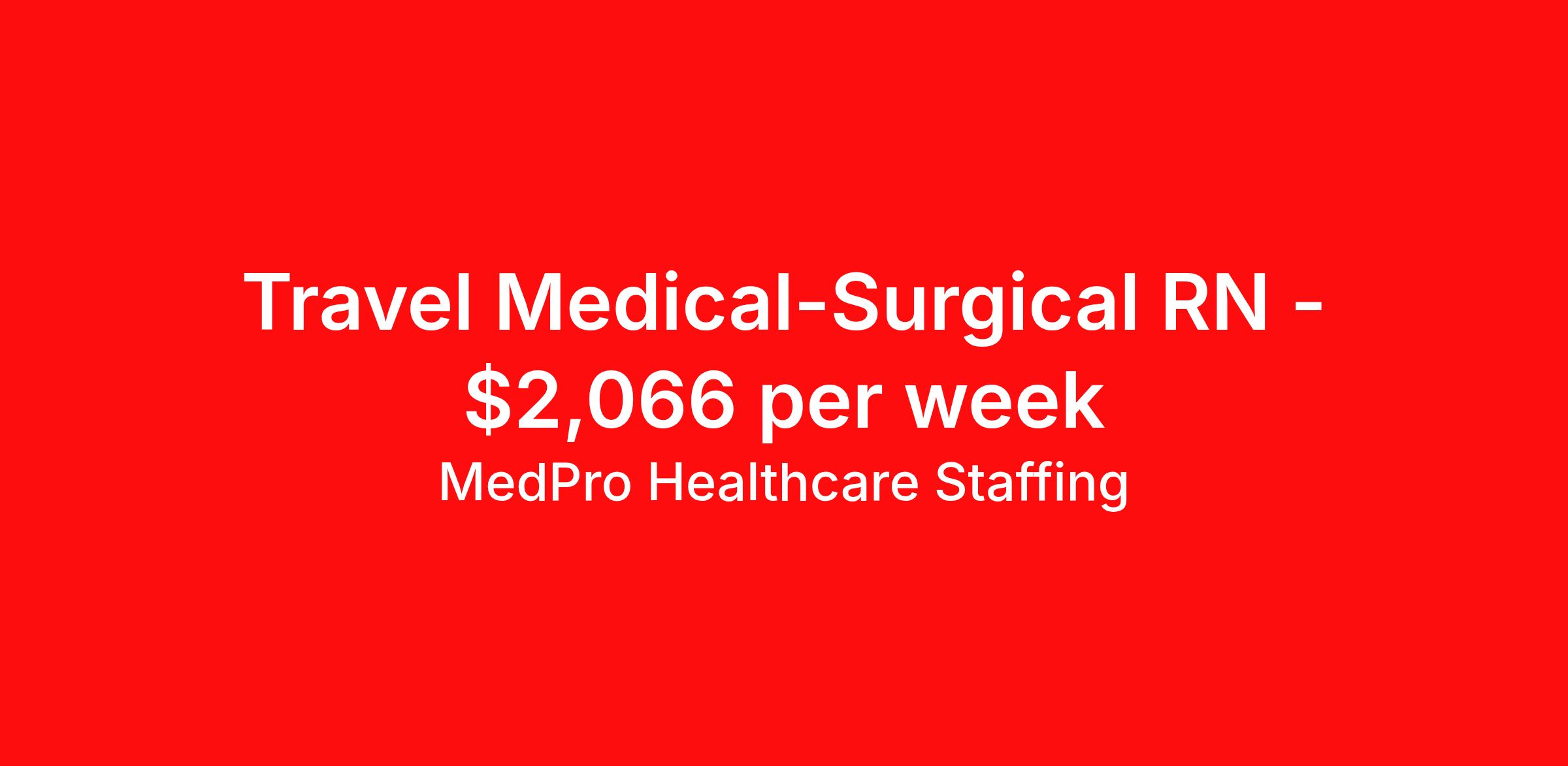 MedPro Healthcare Staffing is seeking a travel nurse RN Med Surg for a travel nursing job in Phoenix, Arizona. Job Description & Requirements Specialty: Med Surg Discipline: RN Start Date: 04/06/2026 Duration: 13 weeks 36 hours per week Shift: 12 hours, nights Employment Type: Travel MedPro Healthcare Staffing , a Joint Commission-certified staffing agency, is seeking a quality Med-Surg registered nurse (RN) for a travel assignment with one of our top healthcare clients. Requirements Active RN License Degree from accredited nursing program BLS Certifications Eighteen months of recent experience in an Acute Care Med/Surg setting Other requirements to be determined by our client facility Benefits Weekly pay and direct deposit Full coverage of all credentialing fees Private housing or housing allowance Group Health insurance for you and your family Company-paid life and disability insurance Travel reimbursement 401(k) matching Unlimited Referral Bonuses up to $1,000 Duties Responsibilities Med-Surg Nurses (RN) provide care for primarily adult patients before and after surgical procedures; they also attend to those who are being treated with pharmaceuticals to manage illness. Due to the broad range of medical conditions Med/Surg Nurses will encounter, they must be well-versed in a large variety of health conditions. Complete assignments made by physicians. Provide routine treatment and post-surgical care. Assess changes in patient's health status and perform various treatments. Administer medication. Meticulous documentation as to medication and treatment administration to ensure continuity of care between nursing staff, physicians and other treatment team members. About Agency MedPro Healthcare Staffing is a Joint Commission certified provider of contract staffing services. Since 1983, we have placed nursing and allied travelers in top healthcare facilities nationwide. Join us today for your very own MedPro Experience®. If qualified and interested, please call for immediate consideration. MedPro Staffing is an Equal Opportunity Employer. All applicants will be considered for employment without attention to race, color, religion, national origin, age, sex, disability, marital status or veteran status. Key Words: Registered Nurse, RN, Medical-Surgical, Travel Nurse, Contract Nurse, Agency Nurse, Agency RN, RN-MS, RN- Medical Surgical, Travel RN, Contract, Nursing, RN Med-Surg, Travel Nursing *Weekly payment estimates are intended for informational purposes only and include a gross estimate of hourly wages and reimbursements for meal, incidental, and housing expenses. Your recruiter will confirm your eligibility and provide additional details. MedPro Job ID a0Fcx00000GBycLEAT. Pay package is based on 12 hour shifts and 36 hours per week (subject to confirmation) with tax-free stipend amount to be determined. Posted job title: Med-Surg Registered Nurse Nursing: Medical Surgical. About MedPro Healthcare Staffing At MedPro Healthcare Staffing , we believe no one cares more for caregivers than we do. Our mission is simple: you focus on your patients, and we’ll take care of the rest. As a Joint Commission-certified leader in temporary and contract healthcare staffing since 1983, MedPro has proudly connected nursing and allied travelers with top healthcare facilities across the nation. With thousands of job opportunities available nationwide, we make it easy to find assignments that align with your goals and lifestyle. Our on-staff clinical support team—alongside a compassionate group of experienced recruiters—provides hands-on guidance every step of the way. From Day 1 medical benefits and a 401(k) plan to personalized career support, we’re committed to ensuring every professional we serve feels valued, cared for, and empowered to succeed. Guided by a CEO who is a Registered Nurse, MedPro is built on a foundation of clinical insight and genuine compassion for the caregiving community. Through The MedPro Experience® , we deliver travel assignments that are rewarding, memorable, and designed to help you DREAM big, EXPLORE often, and ACHIEVE greatness. Benefits Day 1 medical, dental, and vision benefits for you and your family Weekly pay and direct deposit Unlimited Referral Bonuses starting at $500 On Staff Clinical Support Team Access to nationwide travel assignments MPX Mobile app -24/7 real-time access to jobs, credentials, assignment details, and more Full coverage of all credentialing fees Private housing or housing allowance Tax Free Per Diems, Housing Stipends and Travel Reimbursements Company-paid life and disability insurance Travel reimbursement 401(k) matching Benefits Weekly pay Referral bonus Employee assistance programs