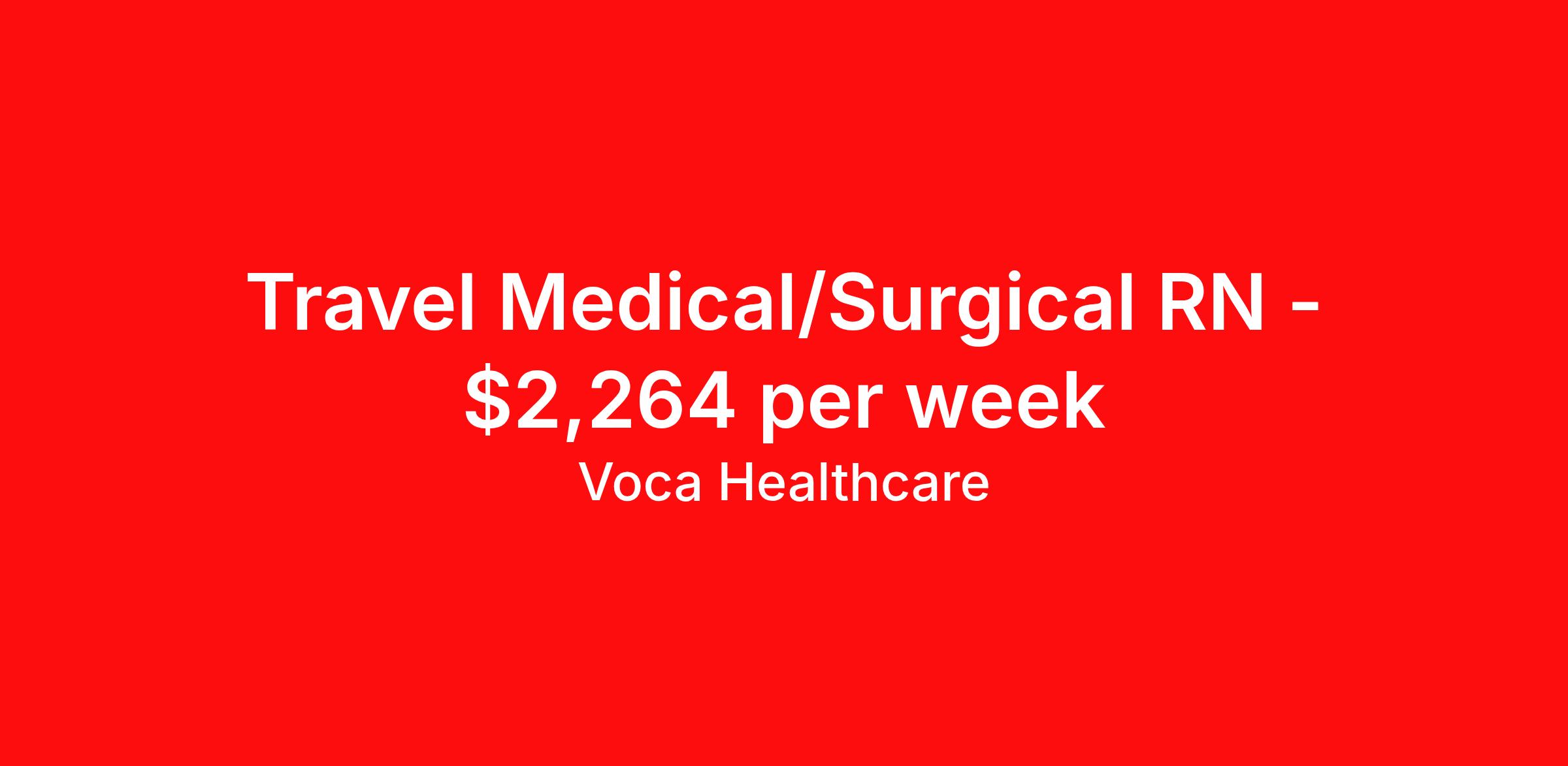 Voca Healthcare is seeking a travel nurse RN Med Surg for a travel nursing job in Oak Bluffs, Massachusetts. Job Description & Requirements Specialty: Med Surg Discipline: RN Start Date: 04/14/2026 Duration: 13 weeks 36 hours per week Shift: 12 hours Employment Type: Travel Benefits available on 1st of the month after start: Holiday pay Weekly pay Retention bonus 401k retirement plan Medical benefits Dental benefits Vision benefits Referral bonus Voca Healthcare Job ID 17964597. Pay package is based on 12 hour shifts and 36.0 hours per week (subject to confirmation) with tax-free stipend amount to be determined. Posted job title: RN:Med Surg,07:00:00-19:00:00 About Voca Healthcare As a Voca Traveler, you will gain new clinical skills, visit amazing places and meet awesome healthcare professionals. As a travel health professional, your experience and dedication to patient care is in high demand throughout the United States. Whether you are a veteran traveler looking for your next opportunity, or you are looking to travel for the first time, Voca is here to support you. Voca’s experienced and dedicated travel team works in concert with you every step of the way. Our long-standing partnerships with some of the most respected and recognized healthcare organizations in the country allow us to identify career opportunities to help you increase your knowledge and experience while working with some of the best physicians and healthcare professionals in the world. At Voca, we strongly believe a better career results in a happier you. We are here to help you find a position that is professionally and personally rewarding. Benefits Holiday Pay 401k retirement plan Medical benefits Dental benefits Vision benefits Guaranteed Hours