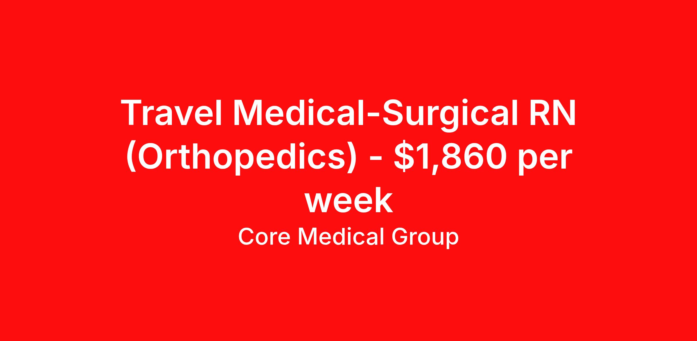 Core Medical Group is seeking a travel nurse RN Med Surg for a travel nursing job in Lafayette, Louisiana. Job Description & Requirements Specialty: Med Surg Discipline: RN Start Date: 03/22/2026 Duration: 13 weeks 36 hours per week Shift: 12 hours Employment Type: Travel Client in LA seeking Registered Nurse: Med/Surg for the following shift(s): Nights We are looking for a healthcare professional who is ready to provide exceptional patient care in this contract/travel role. Contract/travel assignments are typically 13 weeks, with potential to extend. Help us continue our mission to connect people, improve lives, and give back to the community by joining the CoreMedical Group team. When you work with CoreMedical Group, we put you first and treat you like family, supporting you every step of the way. CoreMedical Group is one of the largest healthcare staffing agencies in the country, with travel and contract positions located across the United States. Our recruiters will help you find the perfect job, whether it's across the country or across the street. In addition to dedicated, personalized support from your recruiter, when you work with CoreMedical Group you'll receive: Access to an extensive benefits package, including day 1 health, dental, and vision insurance, employer paid life insurance, a health reimbursement account, and more! Weekly paychecks with competitive pay packages Matching 401(k) benefits to help you save for retirement Licensure assistance and reimbursement to set you up for success on your contract Travel reimbursement and dedicated housing support while on assignment Referral cash bonuses when you connect us with other clinicians CoreMedical Group also offers you a free, all-inclusive vacation each year as our way of saying "thank you" for your hard work. Join other healthcare professionals on the annual Club CoreMed retreat and you'll see why our contract and travel professionals come back to us year after year! Your career is too valuable to tackle on your own. Let CoreMedical Group help you with your healthcare journey! *Estimate of weekly payments is intended for informational purposes and includes hourly wages, as well as reimbursements for meal & incidental expenses, and housing expenses incurred on behalf of the Company. Any benefits (medical/dental/vision) are in addition to the weekly pay. Please speak with your Recruiter for additional details. Estimated payments are subject to change until formal offer of assignment is made and accepted. Core Medical Group Job ID 1356566. Pay package is based on 12 hour shifts and 36 hours per week (subject to confirmation) with tax-free stipend amount to be determined. Posted job title: RN About Core Medical Group CoreMedical Group is one of the largest healthcare staffing agencies in the country. We have jobs nationwide in travel nursing, travel allied health, interim, locum tenens, and permanent placements! Join the staffing agency with Club CoreMed, the best perk in the industry - an all inclusive paid trip to a tropical resort! Benefits Weekly pay Holiday Pay Guaranteed Hours Continuing Education 401k retirement plan Pet insurance Company provided housing options Sick pay Wellness and fitness programs Mileage reimbursement Referral bonus Employee assistance programs Medical benefits Dental benefits Vision benefits Benefits start day 1 License and certification reimbursement Life insurance Discount program