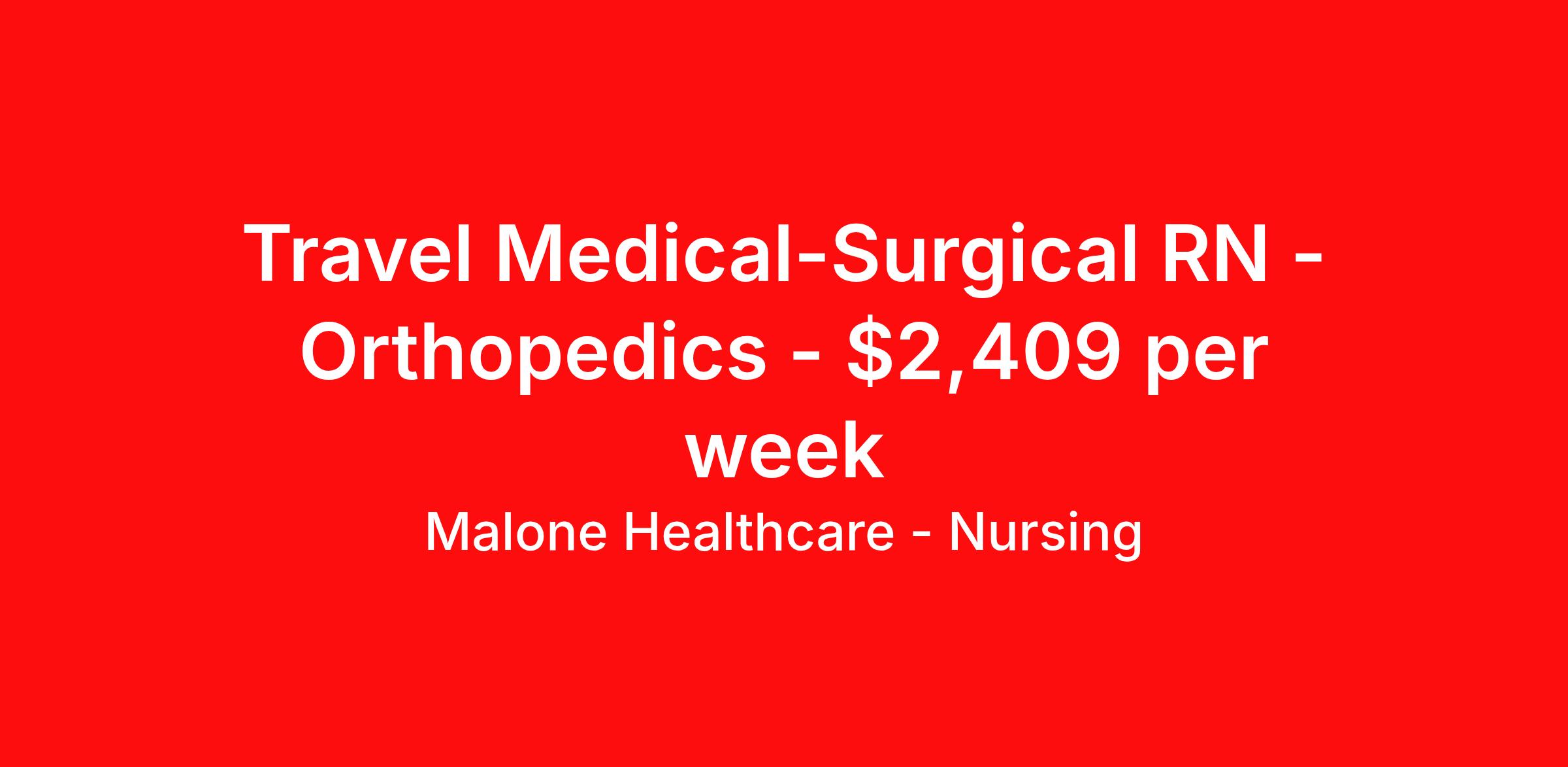 Malone Healthcare - Nursing is seeking a travel nurse RN Med Surg for a travel nursing job in Lawrenceburg, Tennessee. Job Description & Requirements Specialty: Med Surg Discipline: RN Start Date: 03/27/2026 Duration: 13 weeks 36 hours per week Shift: 12 hours, nights, flexible Employment Type: Travel About Malone Healthcare - Nursing With a commitment to providing a higher standard of service and experience in patient care, Malone Healthcare places expert nurses and allied health professionals in rewarding careers throughout the United States. As a leading healthcare staffing agency, Malone’s focus on compliance and integrity translates to a seamless experience for our team members and partner facilities. When you work with Malone Healthcare, you can rely on over 50 years of proven experience placing exceptional professionals in quality healthcare settings. Benefits Weekly pay Holiday Pay Guaranteed Hours Continuing Education 401k retirement plan Pet insurance Referral bonus Medical benefits Dental benefits Vision benefits License and certification reimbursement Life insurance