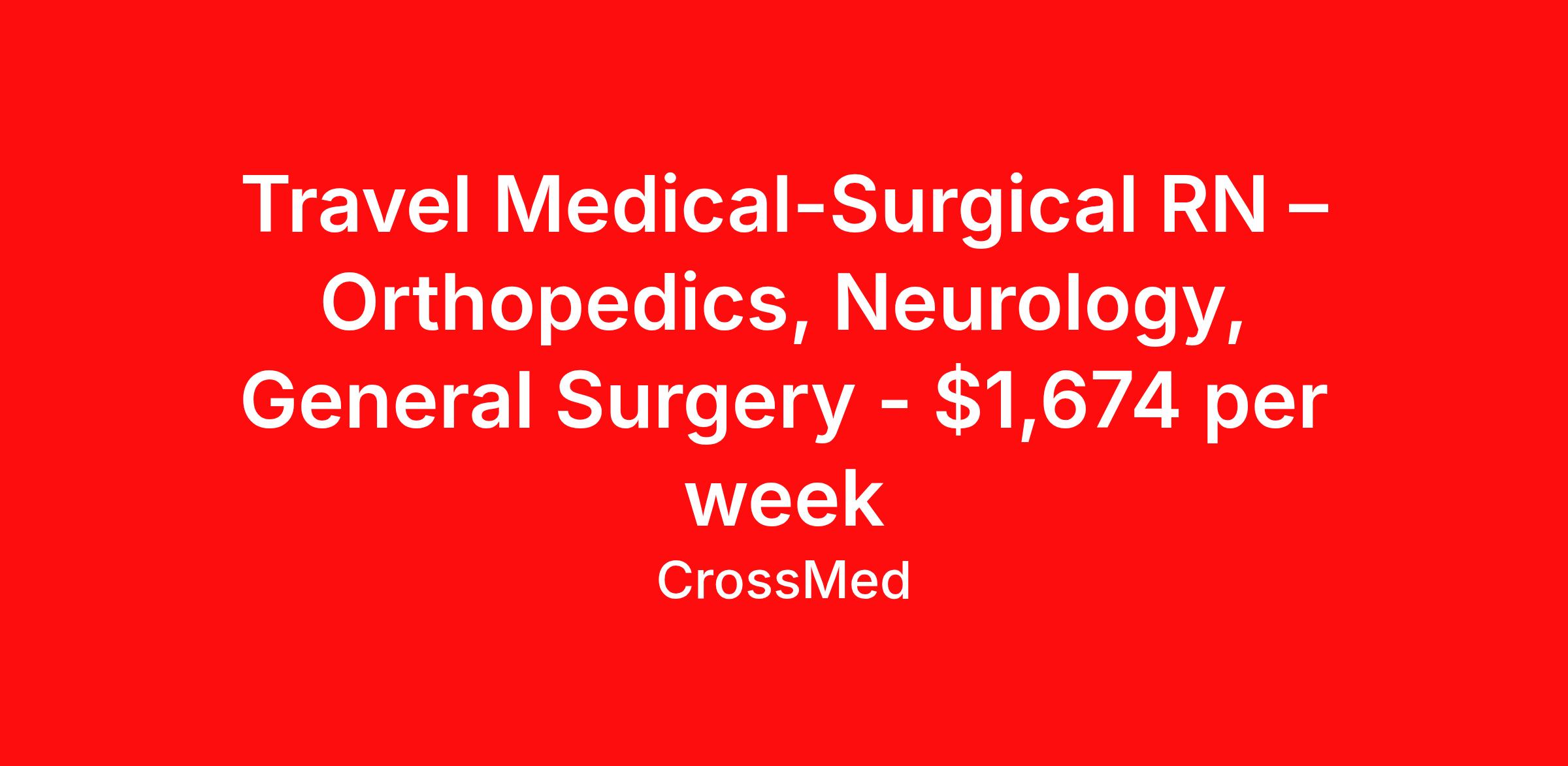 Travel Medical-Surgical RN – Orthopedics, Neurology, General Surgery - $1,674 per week
