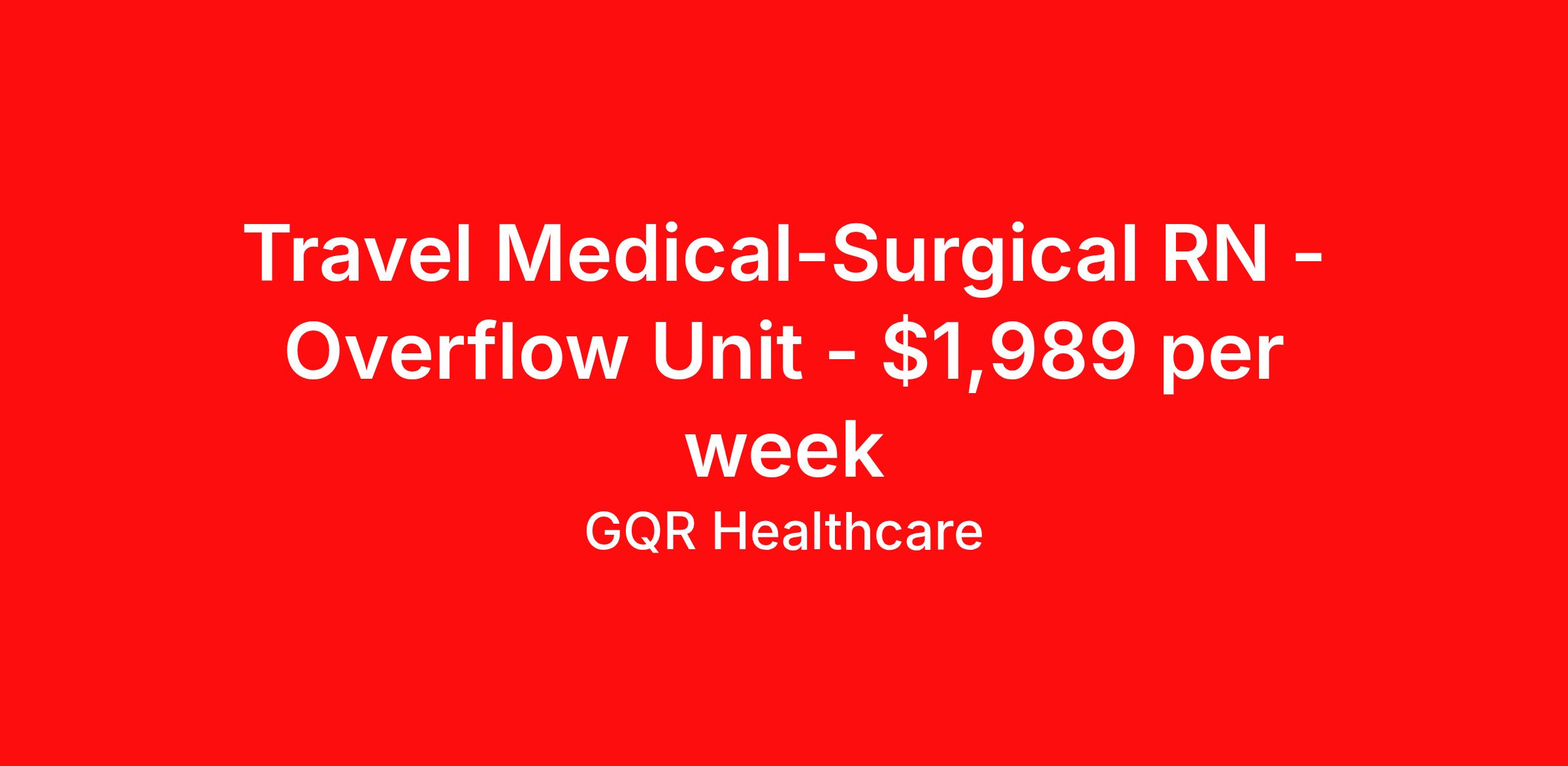 Travel Medical-Surgical RN - Overflow Unit - $1,989 per week