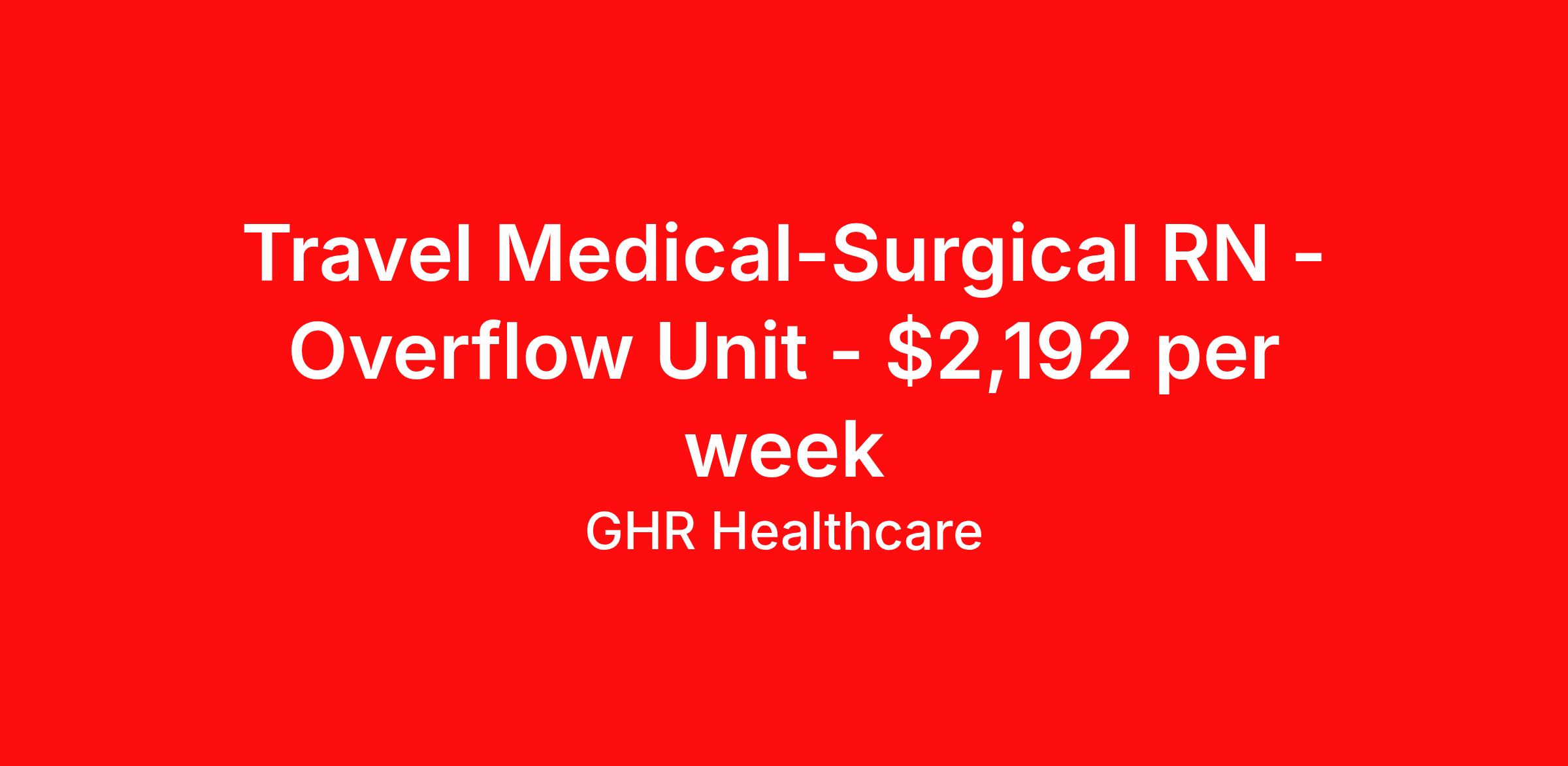 Travel Medical-Surgical RN - Overflow Unit - $2,192 per week