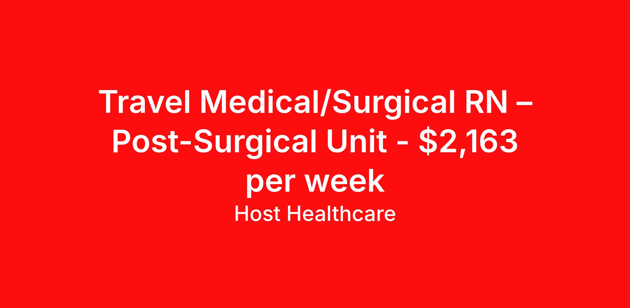 Travel Medical/Surgical RN – Post-Surgical Unit - $2,163 per week