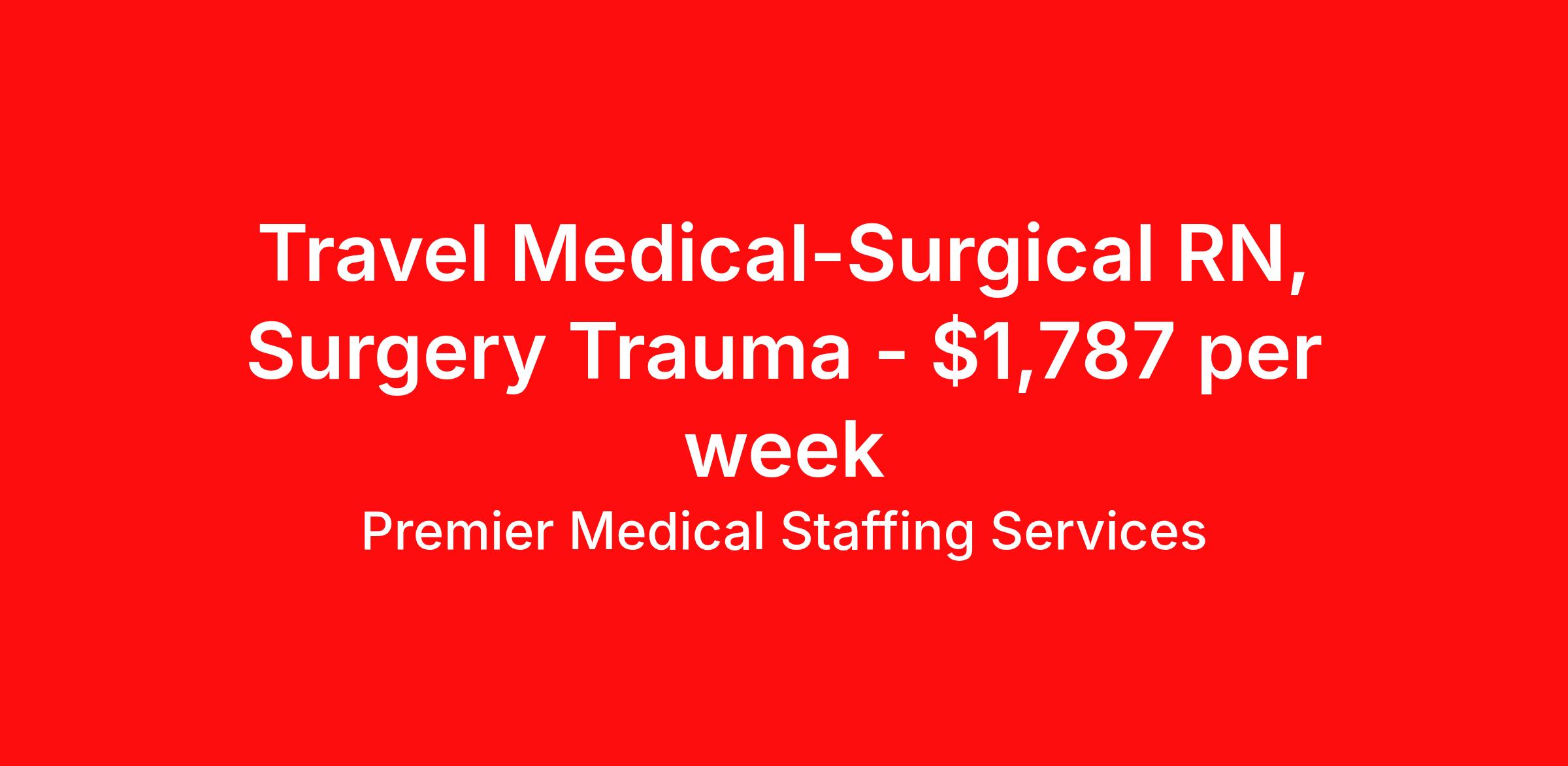 Premier Medical Staffing Services is seeking a travel nurse RN Med Surg for a travel nursing job in Atlanta, Georgia. Job Description & Requirements Specialty: Med Surg Discipline: RN Start Date: 04/06/2026 Duration: 7 weeks 36 hours per week Shift: 12 hours Employment Type: Travel Premier Medical Staffing Job ID 625889. Pay package is based on 12 hour shifts and 36 hours per week (subject to confirmation) with tax-free stipend amount to be determined. Posted job title: RN Med/Surg About Premier Medical Staffing Services Premier Medical Staffing Services, LLC is a nationally expanding healthcare staffing firm for healthcare professionals and companies. We understand our clients’ need for highly qualified, expertly trained medical professionals and are passionate about helping clinicians find employment opportunities that fit their personality and needs. Able to accommodate the ever-changing needs of the healthcare landscape, we offer per-diem, contract and direct hire placements to support the unique needs of each industry sector. Premier Medical Staffing Services is Joint Commission Certified, a Military Spouse Employment Partner and is certified as a Women’s Business Enterprise. We are proudly nurse owned.