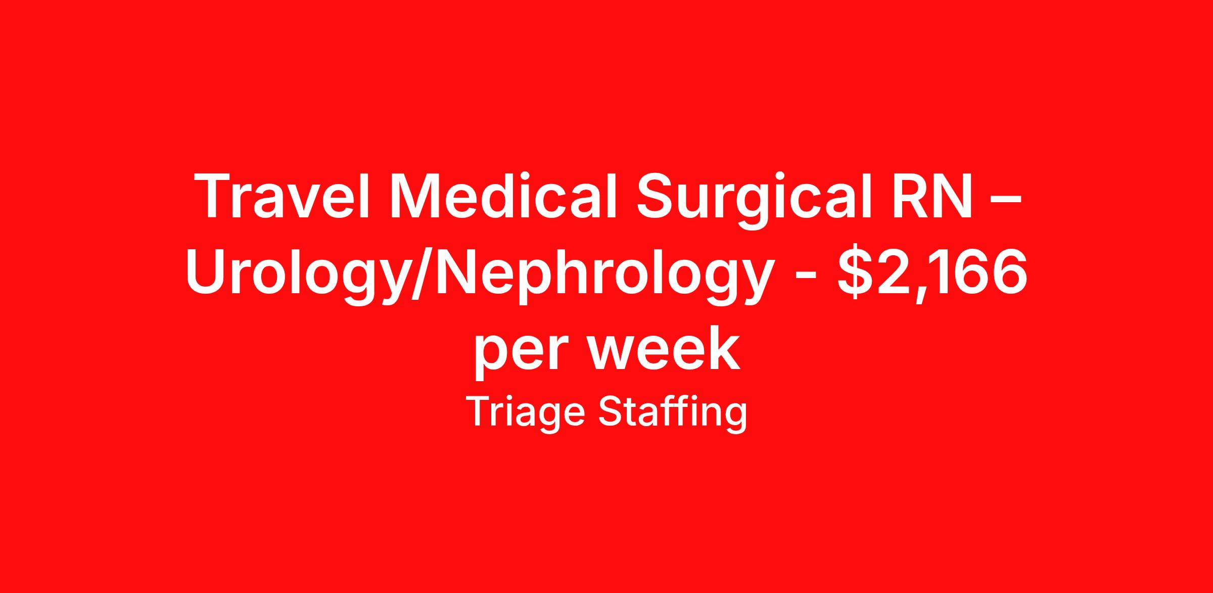 Travel Medical Surgical RN – Urology/Nephrology - $2,166 per week