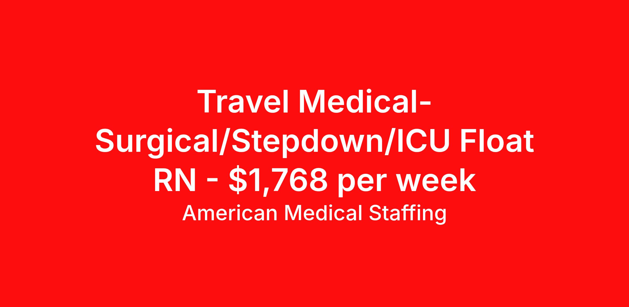 American Medical Staffing is seeking a travel nurse RN Float Med Surg for a travel nursing job in Boone, North Carolina. Job Description & Requirements Specialty: Med Surg Discipline: RN Start Date: 04/13/2026 Duration: 13 weeks 36 hours per week Shift: 12 hours, nights Employment Type: Travel We’re living in the new normal. Lives and careers look different today. So why shouldn’t you have a role that delivers excitement, fewer restrictions, and brings you closer to loved ones? At American Medical Staffing (AMS), we believe in supporting the pioneers who embody the sense of adventure each new placement brings and we’re looking for a RN: MedSurg for our Hospital contract assignment. Job Title : RN: MedSurg Location : Boone, North Carolina Pay Range : Competitive, Negotiable, with Weekly Pay Schedule : 12-Hour Nights, 19:00:00-07:00:00, 12.00-3 Contract Length : 13 Weeks Requirements : · 2 years of experience as a RN · Qualified applicants MUST have at least 2 years of experience in the MedSurg · Valid RN license · Be willing to obtain North Carolina licensure Why Choose American Medical Staffing? · Day-One Benefits : Medical, dental, and vision plans with no waiting period. · Wellness PTO : Build 1 or 2 weeks of paid time off into your contract. · Hotel Discounts : Save up to 60% on hotel bookings with access to 700,000 discounted properties. · Loyalty Program : Earn financial incentives automatically based on hours worked and assignment type. · Referral Program : $500 for you and $500 for each referral after 450 hours—no limits. · Working Advantage : Access exclusive discounts on retail, entertainment, and travel. · Scrub Discount : 20% off all scrubs through our customized AMS store. · Retirement Plans : 401(k) options to help you plan for the future. · Compliance & Credentialing Support : Let us handle the logistics so you can focus on patient care. Responsibilities · Deliver specialized care to patients across a variety of acute and subacute units. · Work closely with a multidisciplinary team of healthcare professionals to provide comprehensive and compassionate care. · Monitor patient conditions, administer treatments and document outcomes. · Advocate for the best possible patient experience while supporting recovery, safety, and continuity of care. Apply now to take the next step in your journey. American Medical Staffing is an Equal Employment Opportunity Employer and does not discriminate on the basis of race, color, religion, sex, national origin, sexual orientation, gender identity, disability, age, or any other non-merit factor. American Medical Staffing Job ID 110442. Pay package is based on 12 hour shifts and 36.0 hours per week (subject to confirmation) with tax-free stipend amount to be determined. Posted job title: RN:MedSurg,19:00:00-07:00:00 About American Medical Staffing American Medical Staffing is a staffing agency headquartered in Baltimore, MD. Our goal is to CREATE an extraordinary experience for our health care professionals. Our roots are nurse owned and operated so we know what clinicians want - lots of options, a smooth and informed placement process, competitive and accurate pay, great customer service and responsiveness to requests, and advocacy when there is an issue. When AMS was founded in 2001, we started our company with a mission to be a better agency than our competitors. We have always put a heavy emphasis into what is best for our employees, not necessarily just our clients or our company. You are not an expense as you may be to a hospital; you are an asset. We take employee advocacy seriously; you are not just a number to us. The end result is that you don`t work for us; we work for you. Since starting in Baltimore, MD, we continue to grow throughout the country. Check out our industry leading reviews on Google and Indeed to see how much our clinicians enjoy working with us! · Benefits: AMS offers an array of benefits for any employee working 30 hours or more! Those eligible employees who choose to participate will pay the premiums with deductions from their pre-tax earnings. We offer a complete benefits package including Health Insurance, 401K with up to 2% match, Life, Vision, and Dental. From health and wellness support, financial or legal needs, or help with life's everyday challenges, our Employee Assistance Program provides you with resources, services and discounts to help you manage your unique concerns and save time, energy and money. We also offer additional Employee Perks that you can enjoy as an AMS employee: Scrubin – Uniform Discounts Working Advantage – unlimited access to thousands of exclusive discounts and special offers nationwide for theme parks, shows, tours, attractions, sports, concerts, hotels, rental cars, retail gift cards, movie tickets and much more Hotel Engine - Save up to 60% when booking hotel rooms, with access to more than 700,000 deeply discounted hotels worldwide. Discounted Pet Insurance Wellness Program, including fitness, nutrition and financial wellness Betterhelp - 1 month of free therapy, followed by a discounted rate for our Healthcare Professionals and their family members. Win Win Referral Bonus - $500 for you, and $500 for them! Benefits 401k retirement plan Life insurance Medical benefits Dental benefits Vision benefits