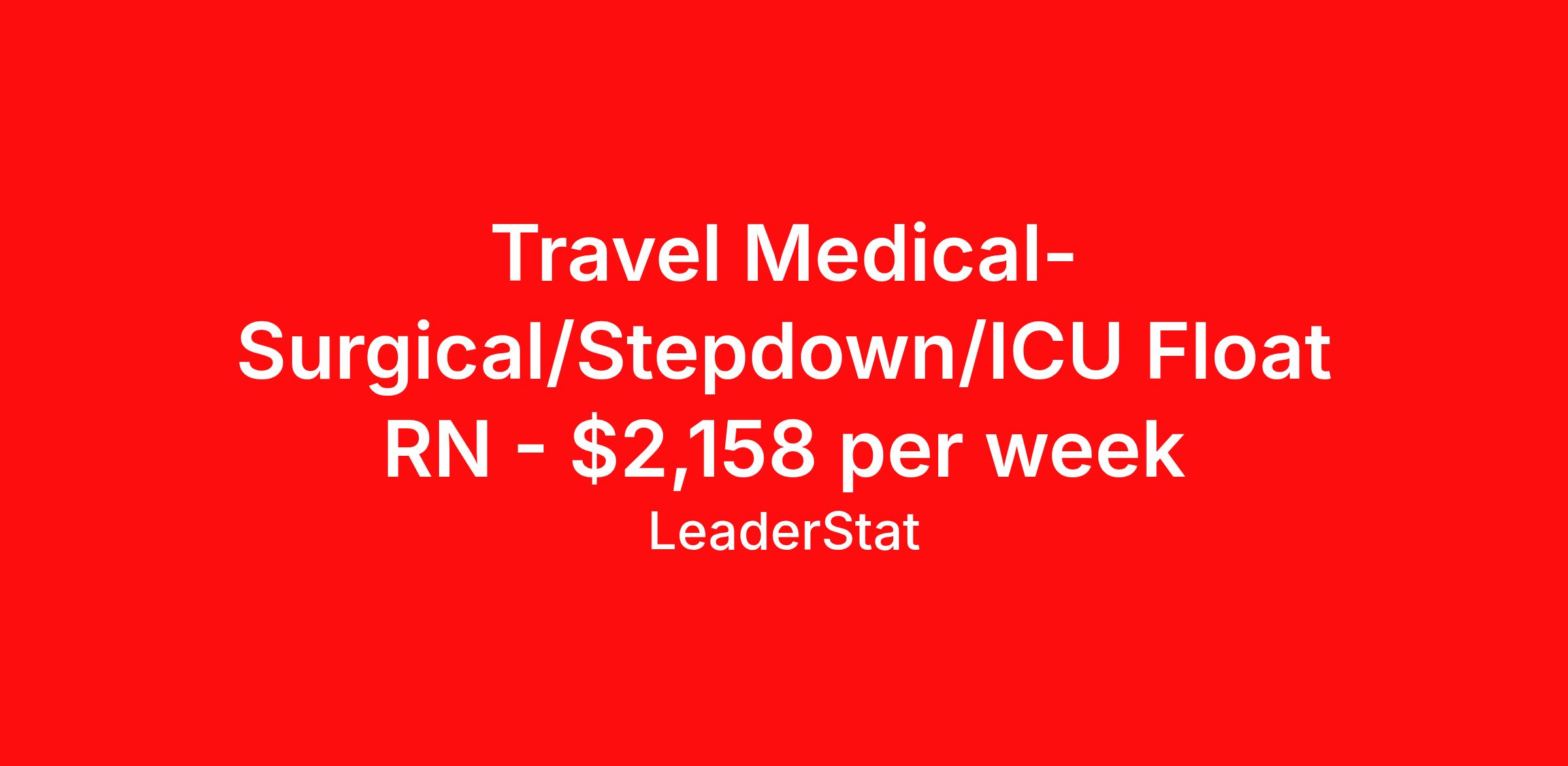 Travel Medical-Surgical/Stepdown/ICU Float RN - $2,158 per week