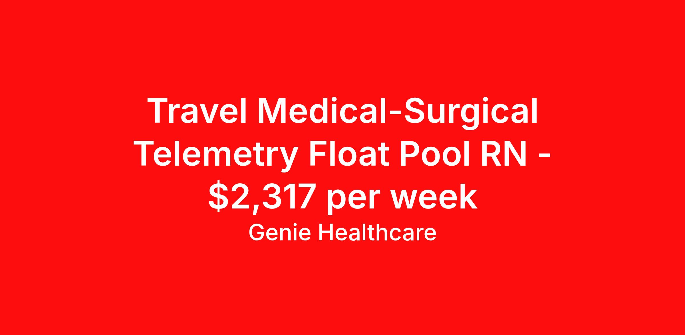 Travel Medical-Surgical Telemetry Float Pool RN - $2,317 per week