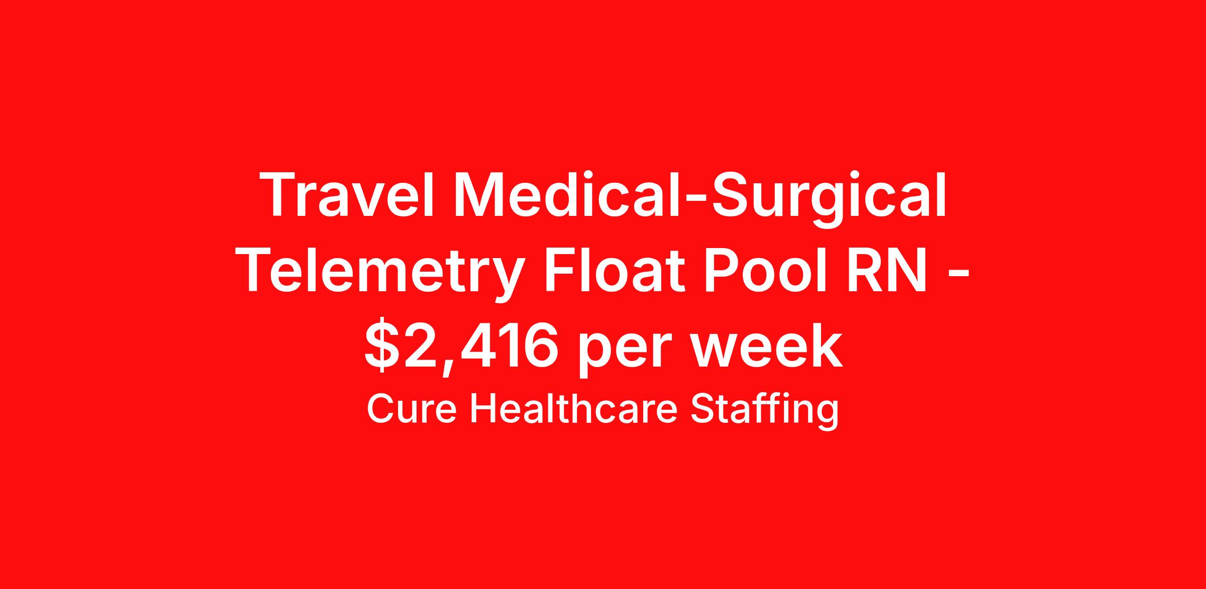 Cure Healthcare Staffing is seeking a travel nurse RN Float Telemetry Med Surg for a travel nursing job in Garden City, Kansas. Job Description & Requirements Specialty: Telemetry Discipline: RN Start Date: 04/13/2026 Duration: 13 weeks 36 hours per week Shift: 12 hours, nights Employment Type: Travel Cure Healthcare is seeking a RN - Telemetry for positions in Garden City, Kansas. Current Kansas license and AHA BLS and ACLS required and additional certifications related to this specialty. To qualify for this travel assignment, the candidate's primary residence must be located at least 50 miles from the facility address. This shift is 3x12 Nights. Required: 2 years of recent experience in Telemetry. Please inquire for specific job details and confirm shift required by facility. Cure Healthcare Staffing Job ID 35667677. Pay package is based on 12 hour shifts and 36.0 hours per week (subject to confirmation) with tax-free stipend amount to be determined. Posted job title: RN:Telemetry,18:00:00-06:00:00 About Cure Healthcare Staffing Phone Number: Main: 512-572-6388 Website: https://curehealthcarestaffing.com/ With 20 years of healthcare staffing experience, Cure is helping nurses and allied health professionals rediscover their love of patient care while providing healthcare facilities with the flexible staffing solutions they need. We talk to nurses and techs every day who feel overwhelmed. By empowering them with flexibility and ownership of their career, we can keep more qualified healthcare professionals in direct patient care. Patient care should always come first. That’s why we went through the process to become accredited by the Joint Commission. We only accept staff that meet the Joint Commission quality criteria so we can ensure that short-term staff assignments contribute to quality care rather than detract from it.