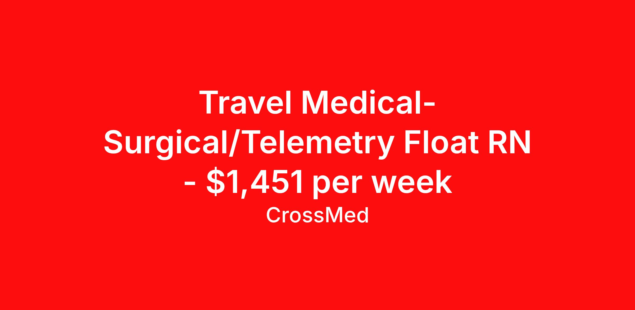 Travel Medical-Surgical/Telemetry Float RN - $1,451 per week