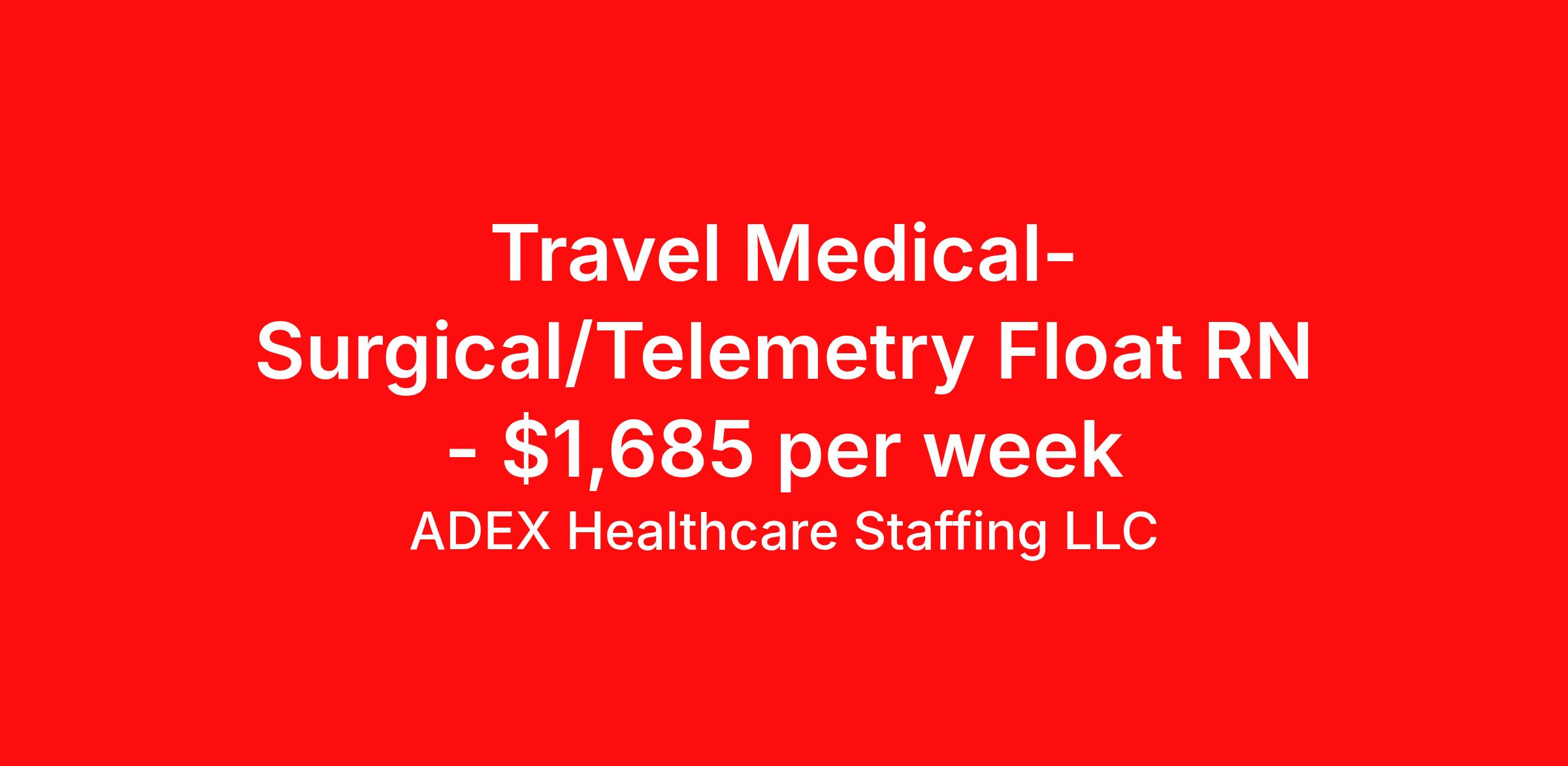 ADEX Healthcare Staffing LLC is seeking a travel nurse RN Med Surg for a travel nursing job in Augusta, Georgia. Job Description & Requirements Specialty: Med Surg Discipline: RN Start Date: 04/13/2026 Duration: 12 weeks 36 hours per week Shift: 12 hours, days Employment Type: Travel RN Position Job Notes: Travel or Local Registered Nurse needed for ASAP start. A minimum of 2 years of recent hospital bedside experience is required. Candidates must be able to start within 5 weeks. Opportunity for extension upon successful completion of the initial assignment. $750 referral bonus available. Opportunity: RN - Med Surg Job Details: • Minimum 1 year of experience required; first-time travelers accepted • Patient population includes adults to geriatrics • Patient ratio of 1:5-6 • BLS certification required • EPIC experience is a hard requirement - candidates without EPIC will be redirected • Must be comfortable with all potential Med Surg and Med Surg Telemetry diagnoses • Floating required to all MS and MS/Tele units within the hospital and possibly to sister campus (Piedmont Augusta Summerville) approximately 3 miles away • Navy blue scrubs required • Every other weekend schedule (average 6 weekends in a 13-week contract) • Maximum 7 days requested time off allowed • RTO blackout dates: Spring Break (April 4th-12th) • No call requirements • Holiday work required based on assignment period: work 1 holiday if 1 falls during assignment, work both if 2 fall during assignment, work 2 of 3 if 3 fall during assignment • Major holidays include Memorial Day, Independence Day, Labor Day, Thanksgiving/Black Friday, Christmas Eve/Christmas Day, New Year's Eve/New Year's Day • Unit systems include Epic, Pyxis, and SBAR • 24 orientation hours (non-billable) • Full compliance required to start on time Facility: This healthcare facility is a comprehensive medical center featuring 5 Med Surg/Med Surg Telemetry departments. The hospital provides extensive interdisciplinary support including IV teams, physical therapy, respiratory services, interpretation services, radiology, social services, lift teams, rapid response teams, pharmacy, and unit secretaries. The facility maintains high standards for patient care and utilizes modern technology systems to support nursing operations. Location: Augusta, GA Augusta offers a perfect blend of Southern charm and modern amenities, known for hosting the prestigious Masters Golf Tournament and featuring beautiful historic districts. The city provides excellent recreational opportunities along the Savannah River and maintains a relatively low cost of living while offering diverse cultural attractions and dining options. Adex Job ID 3207116. Pay package is based on 12 hour shifts and 36 hours per week (subject to confirmation) with tax-free stipend amount to be determined. About ADEX Healthcare Staffing LLC ADEX has been placing healthcare professionals across the US since 2004. Originally founded in Atlanta, GA, the company's headquarters are now located in Tampa, FL. JCAHO certified since 2009. Benefits Referral bonus