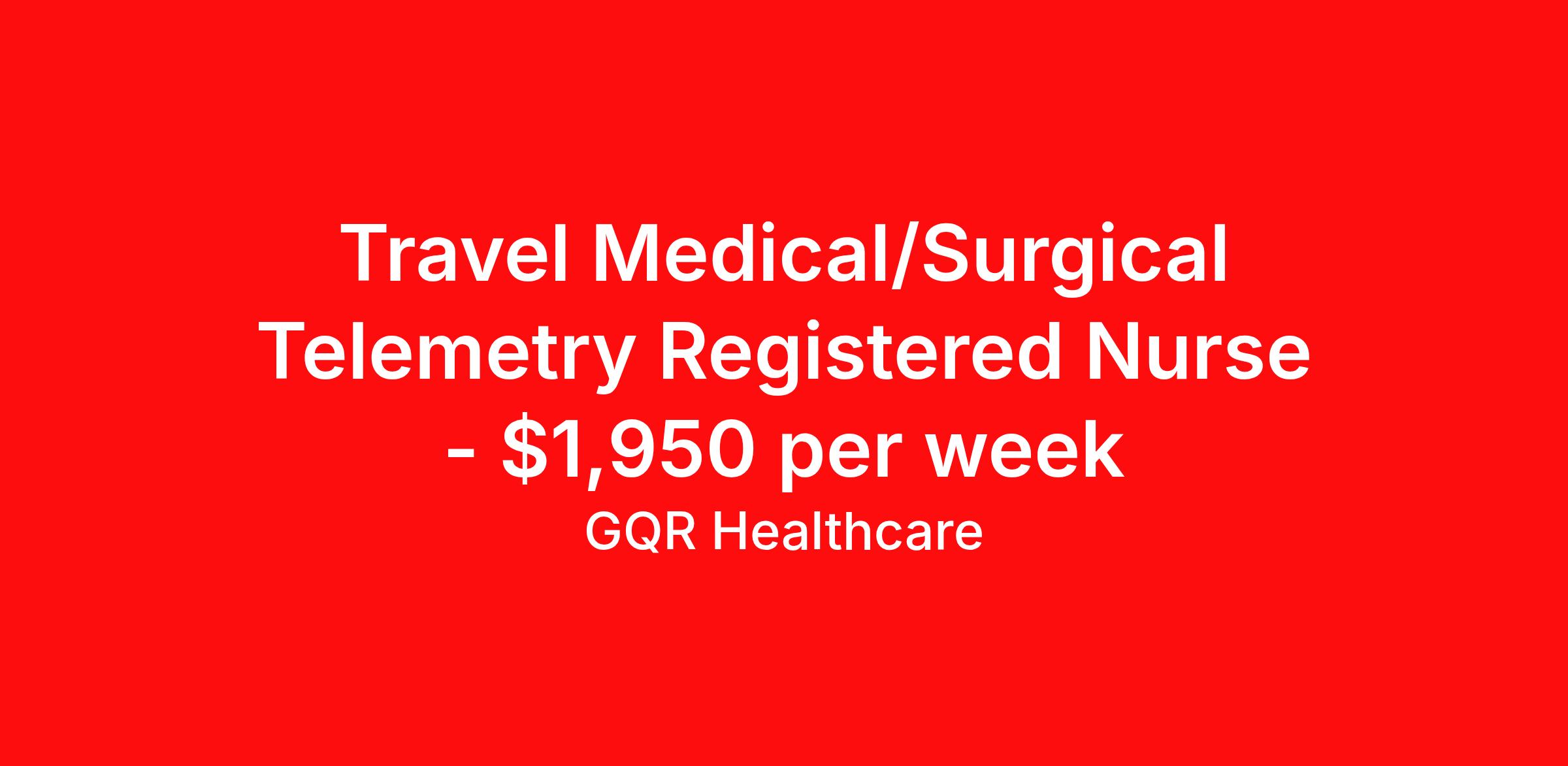 Travel Medical/Surgical Telemetry Registered Nurse - $1,950 per week